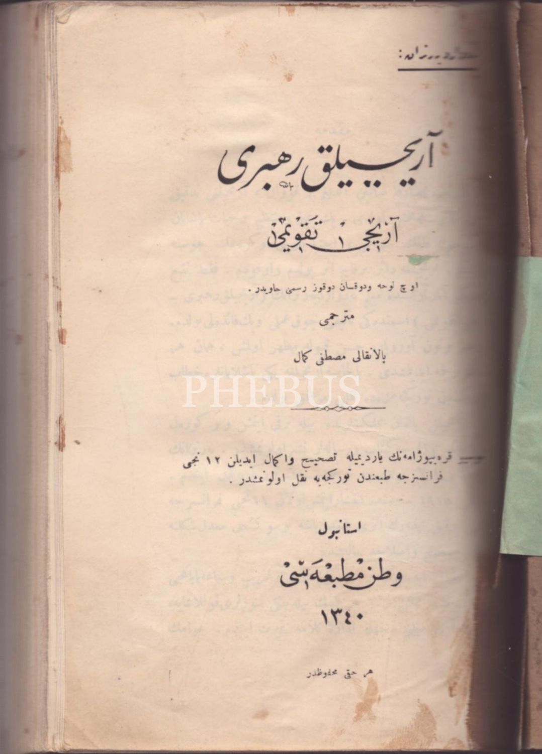 ARICILIK REHBERİ- ARICI TAKVÎMİ, Eduard Bertrand, çev. Palankalı Mustafa Kemal, Vatan Matbaası, İstanbul 1340, 461 s., 14x20 cm