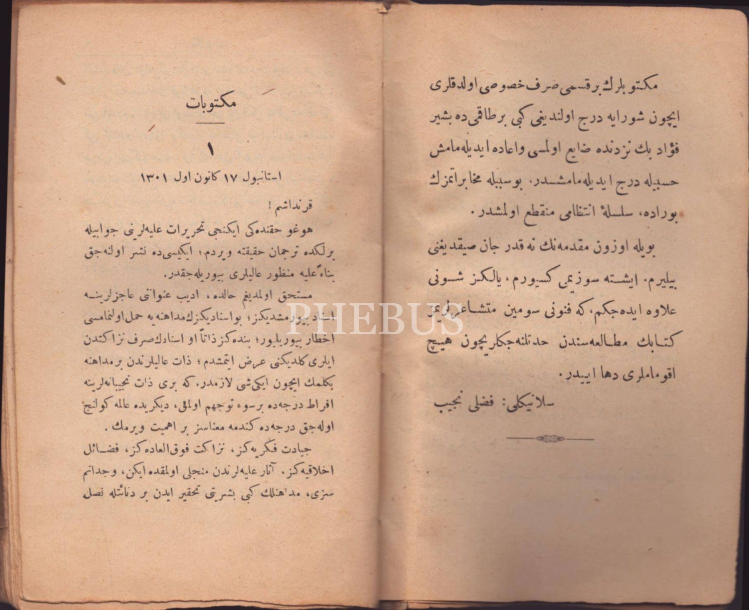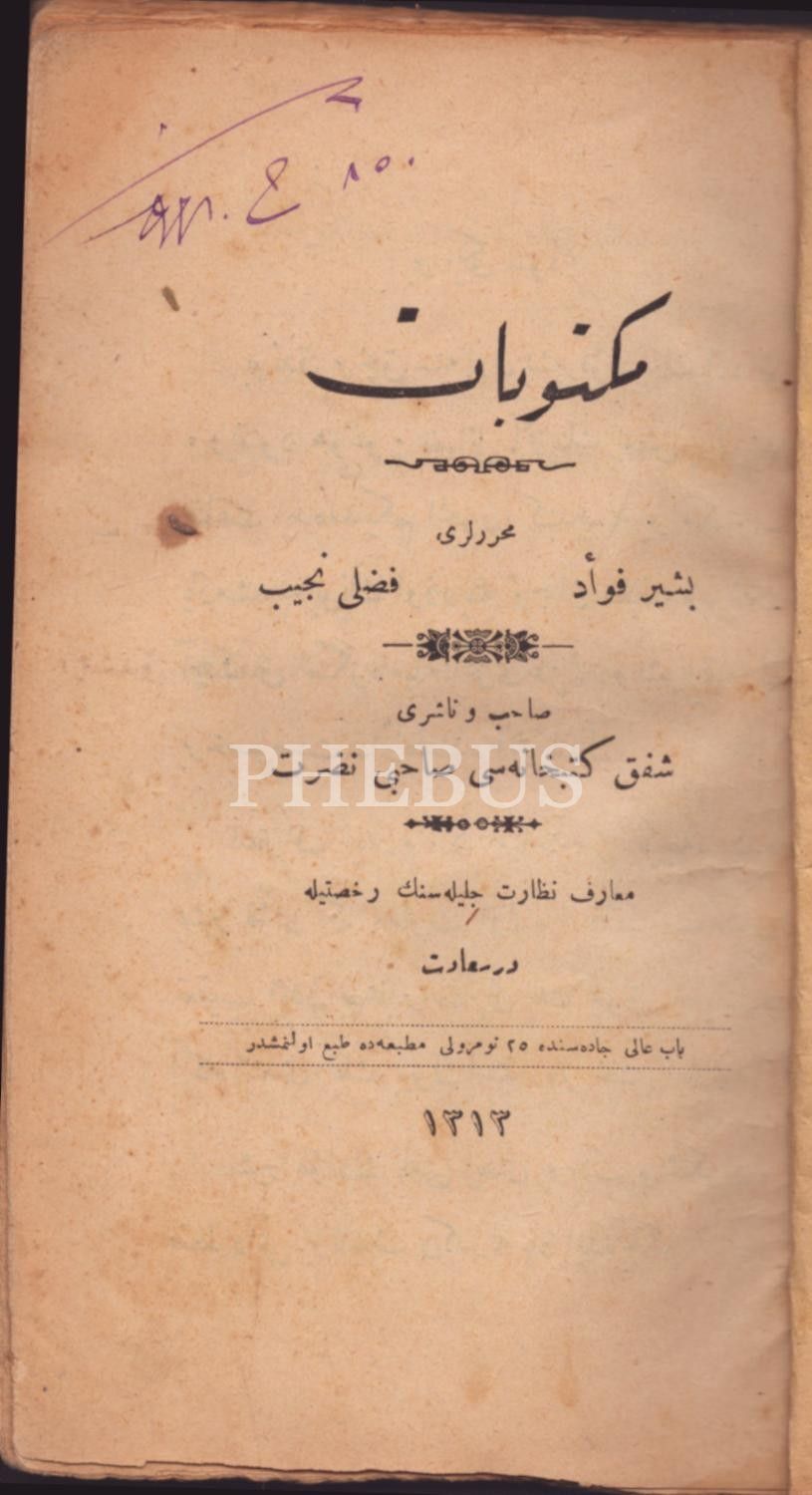 MEKTÛBÂT, Beşir Fuad & Fazlı Necib, Şafak Kütübhanesi, İstanbul 1313, 127 s., 12x19 cm