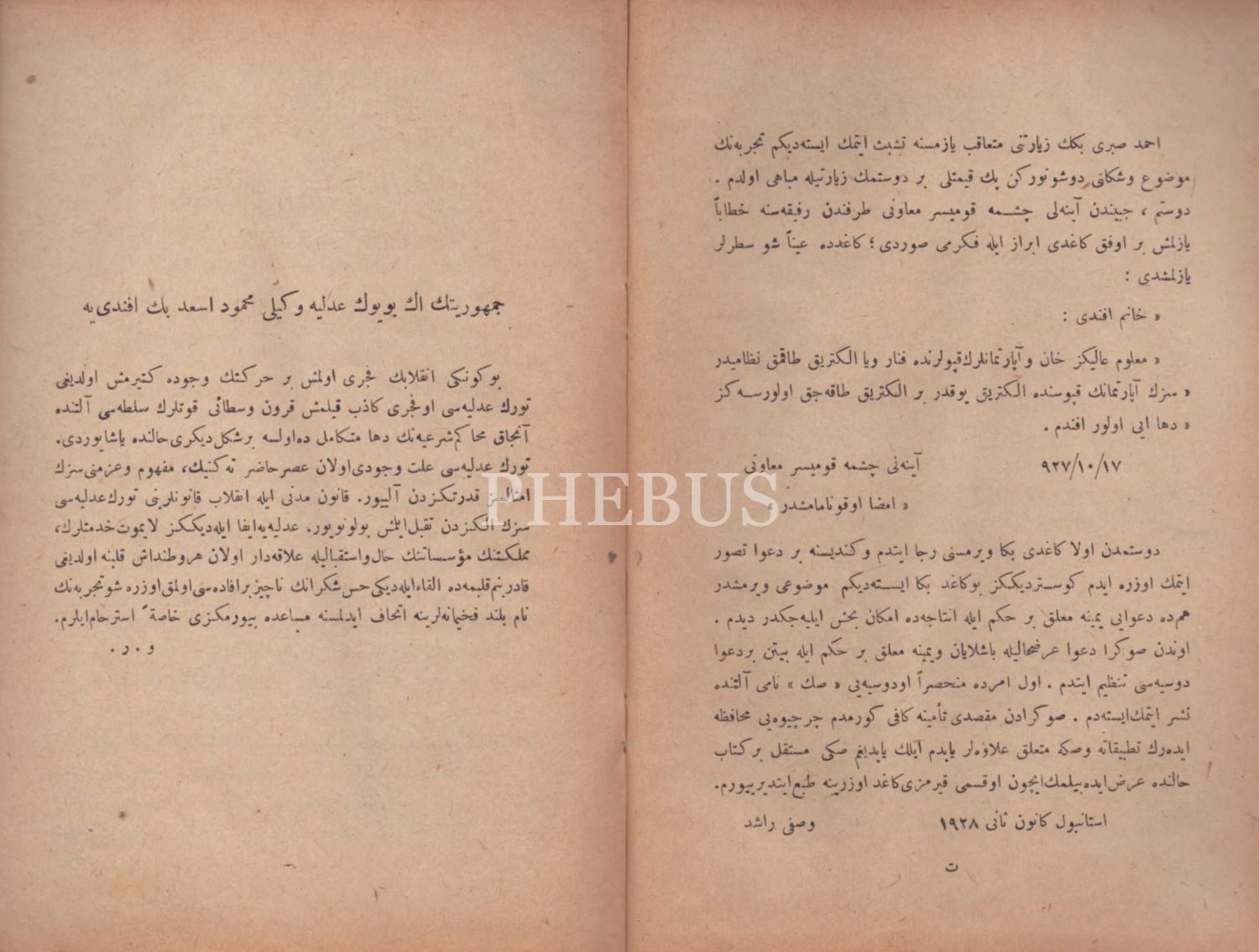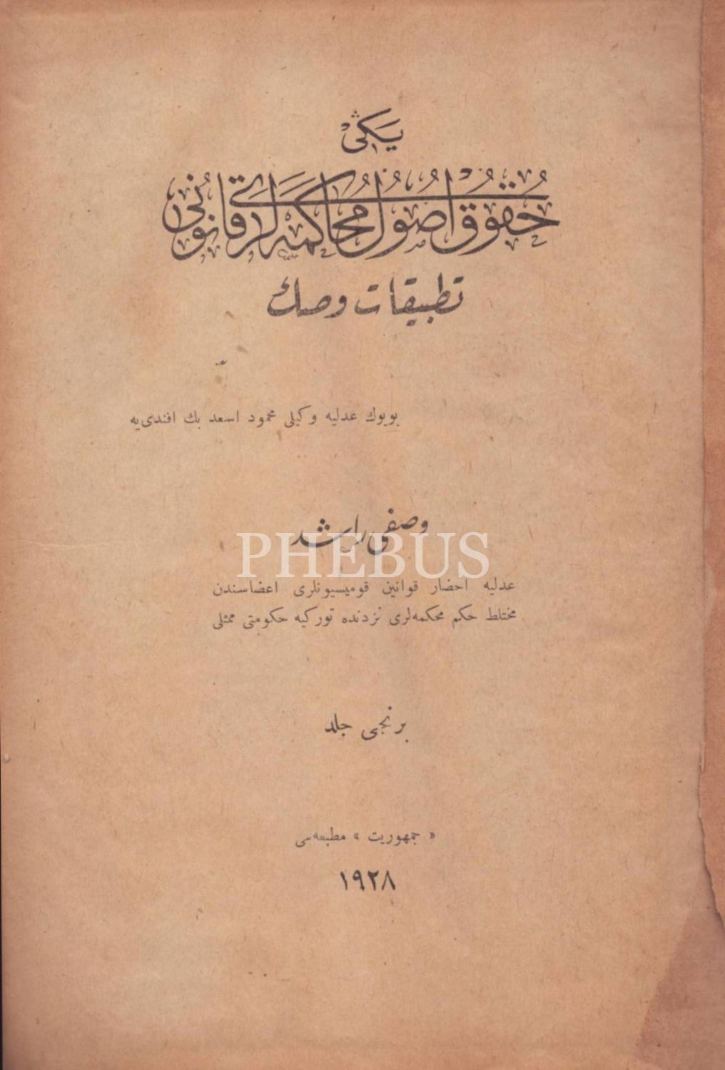 YENİ HUKÛK USÛL MUHÂKEMELERİ KÂNÛNU- Tatbîkât ve Sakk (1. Cilt), Vasfi Raşid, Cumhuriyet Matbaası, 1928, 350+100 s., 17x23 cm