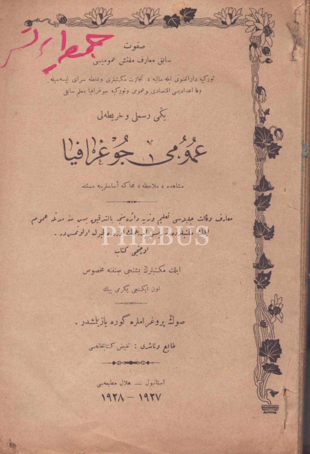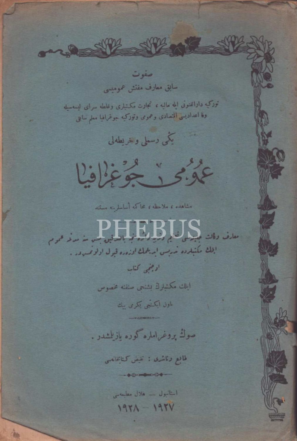 YENİ RESİMLİ VE HARÎTALI UMÛMÎ COĞRAFYA (3. Kitap- Ders Kitabı), Safvet, Tefeyyüz Kitabhanesi, İstanbul 1928, 200 s., 17x25 cm