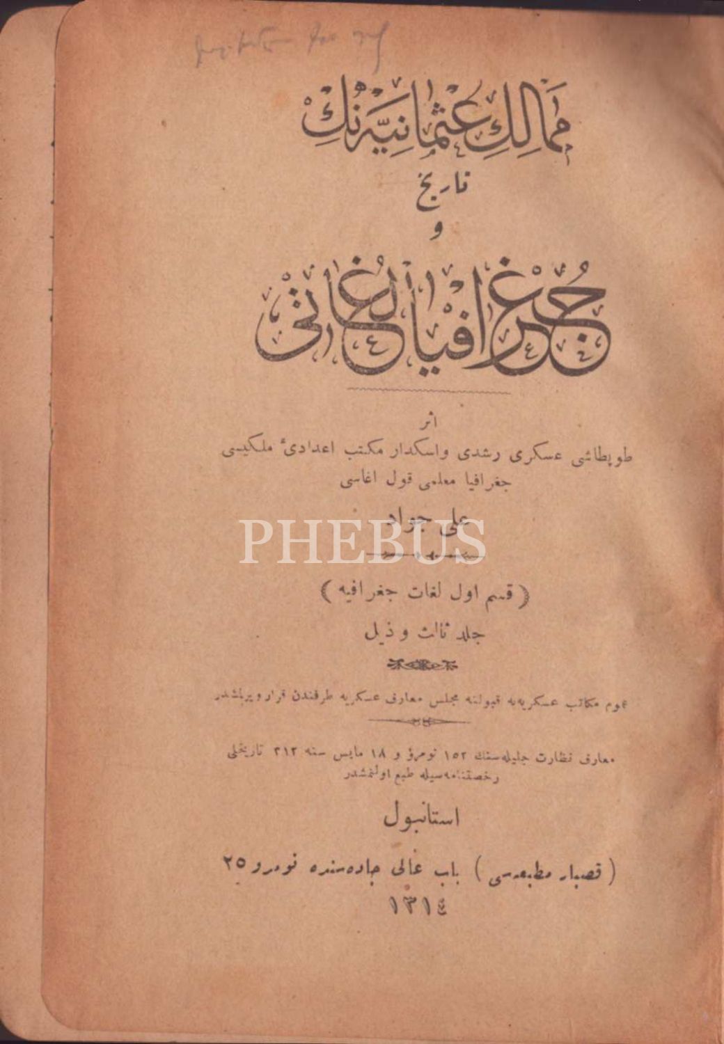 MEMÂLİK-İ OSMÂNİYYENİN TÂRÎH VE COĞRAFYA LÜGÂTİ (3. cilt ve zeyl), Ali Cevad, Kasbar Matbaası, İstanbul 1314, 652-998. sayfalar, 14x20 cm