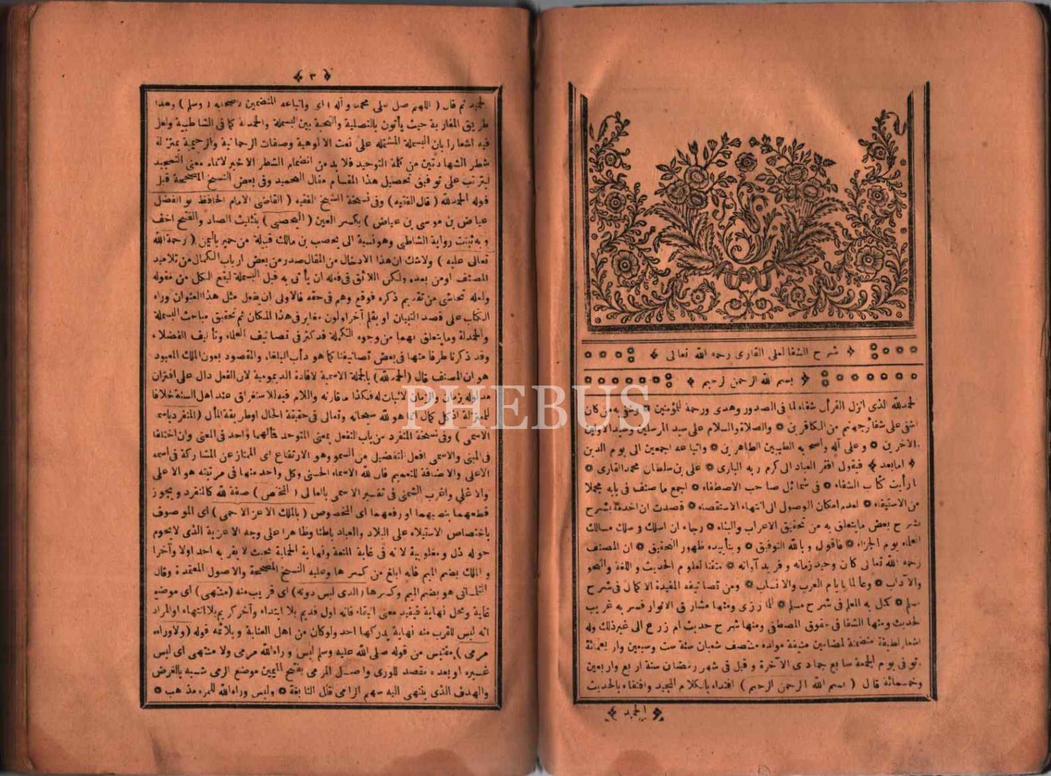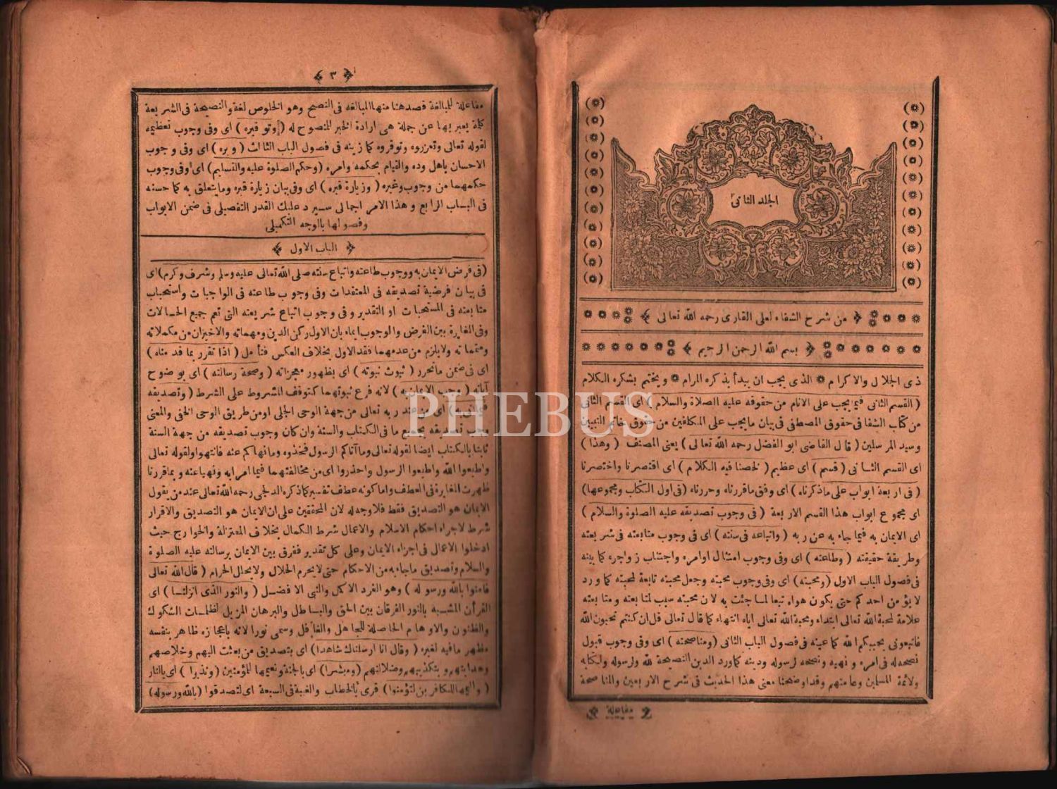 Deri cildinde Arapça ŞERHU´Ş-ŞİFÂ (2 Cilt), Ali el-Kâri, el-Hac Muharrem Efendi Matbaası, İstanbul 1299, 764+565 s., 18x26 cm