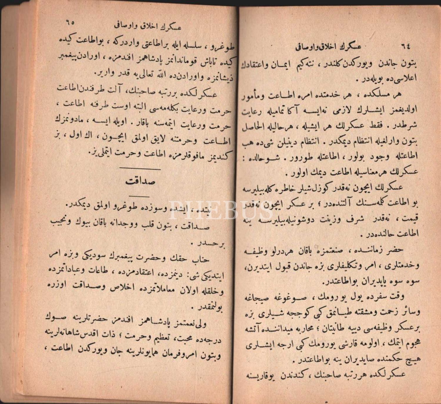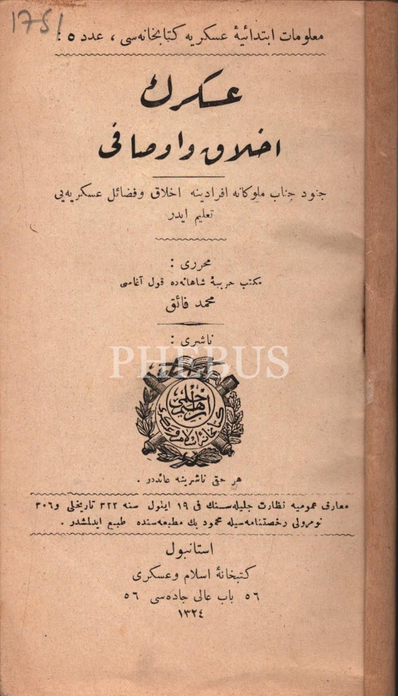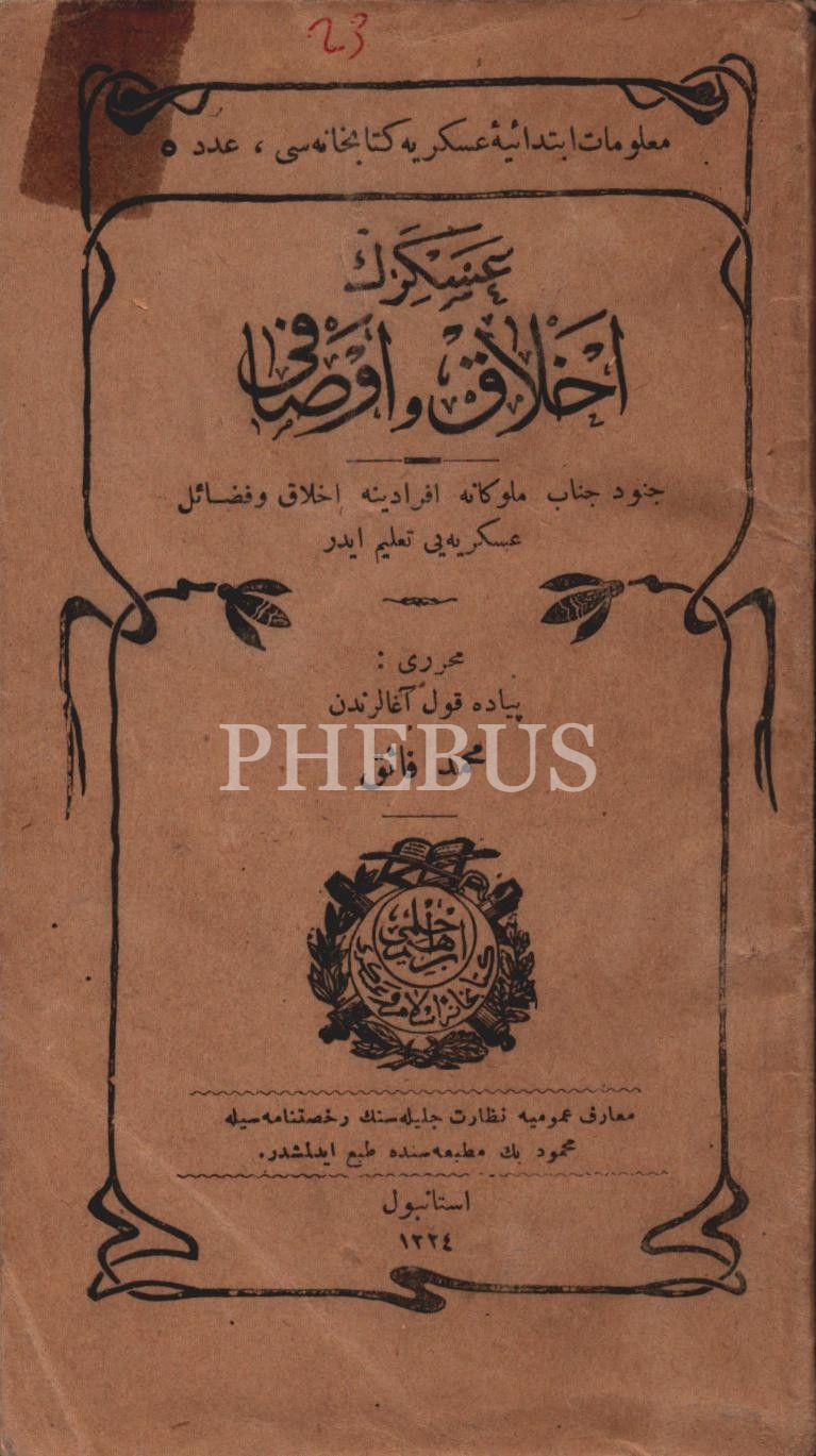ASKERİN AHLÂK VE EVSÂFI, Mehmed Faik, Mahmud Bey Matbaası, İstanbul 1324, 80 s., 10x18 cm