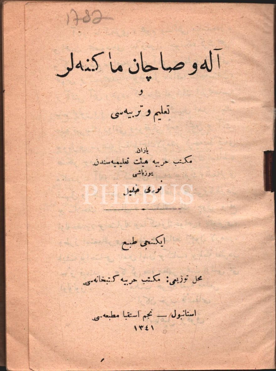 ALEV SAÇAN MAKİNELER VE TA´LÎM VE TERBİYESİ, Yüzbaşı Nuri Halil, Necm-i İstikbâl Matbaası, İstanbul 1341, 36 s., 11x15 cm