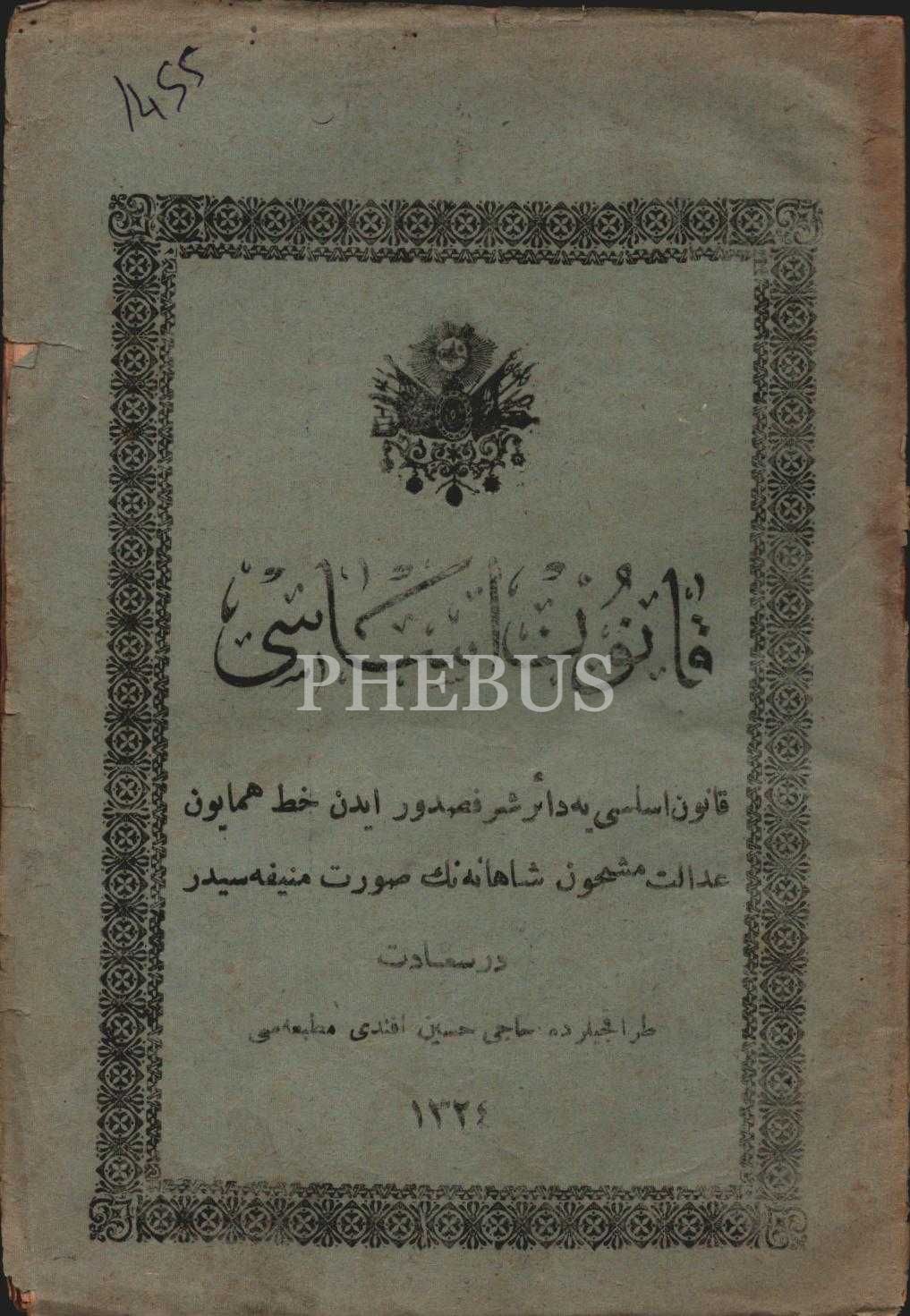 KÂNÛN-I ESÂSÎ, İstanbul 1324, 32 s., 13x19 cm