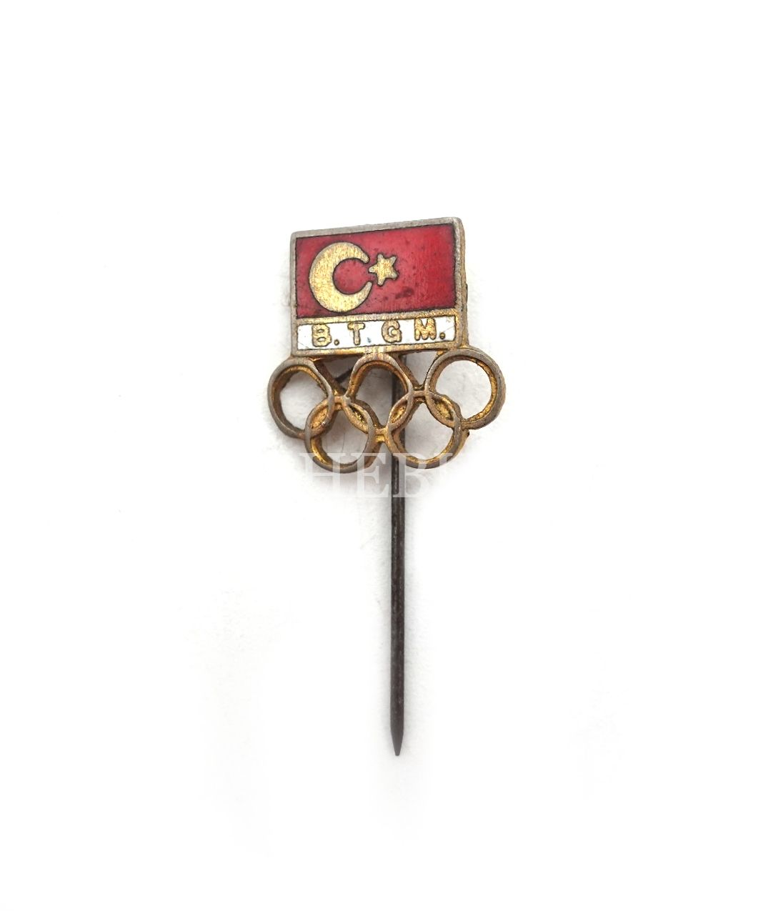 B.T.G.M. [Beden Terbiyesi Genel Müdürlüğü] yazılı, Olimpiyat logolu iğneli rozet, 1,5x1,5 cm