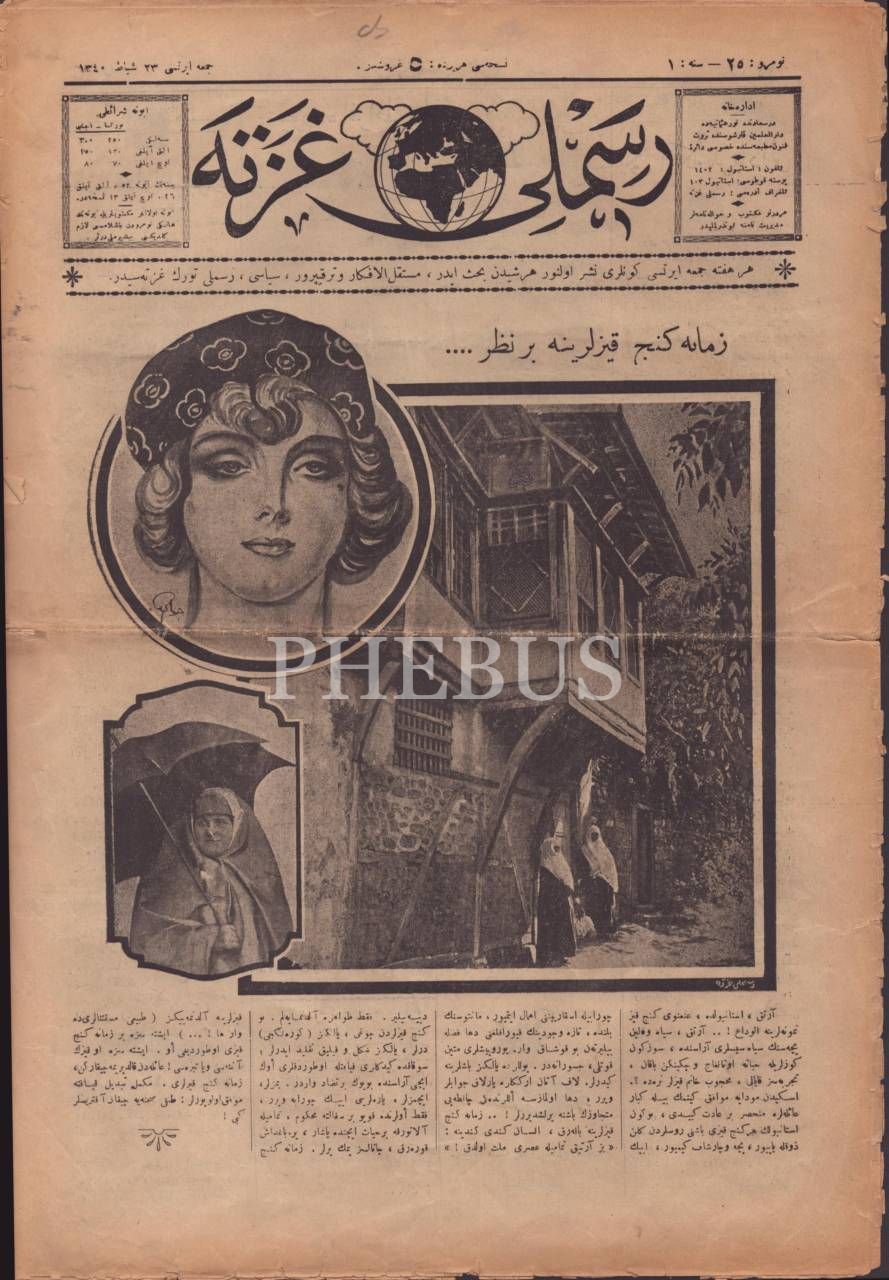 Her şeyden bahseden terakkiperver, siyasi RESİMLİ GAZETE´nin "Zamane Genç Kızlarına Bir Nazar" başlıklı kapak görseliyle 25. sayısı, 23 Şubat 1340, 27x40 cm