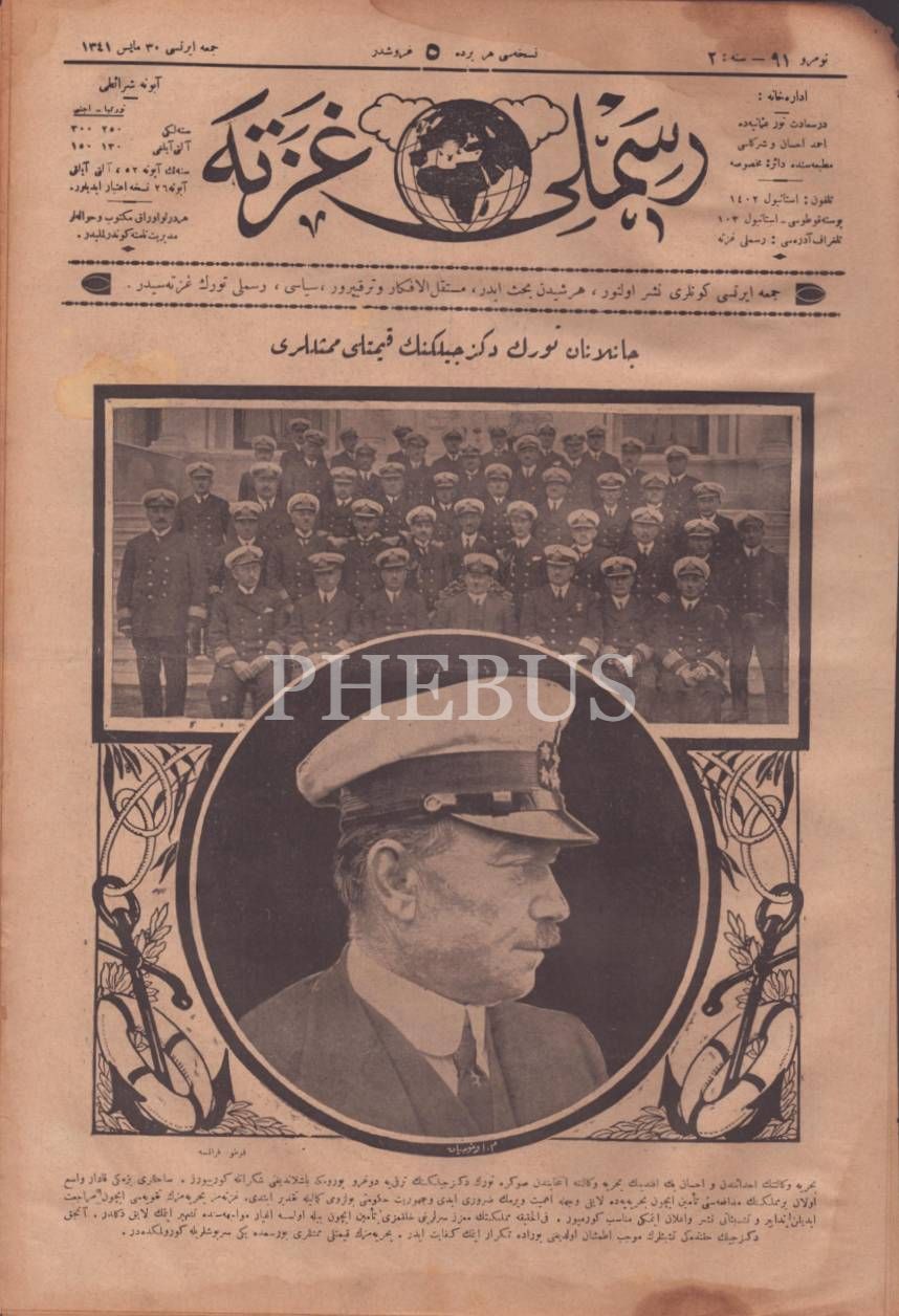 Her şeyden bahseden terakkiperver, siyasi RESİMLİ GAZETE´nin "Canlanan Türk Denizciliğinin Kıymetli Mümesilleri" başlıklı kapak görseliyle 91. sayısı, 31 Mayıs 1341, 27x40 cm