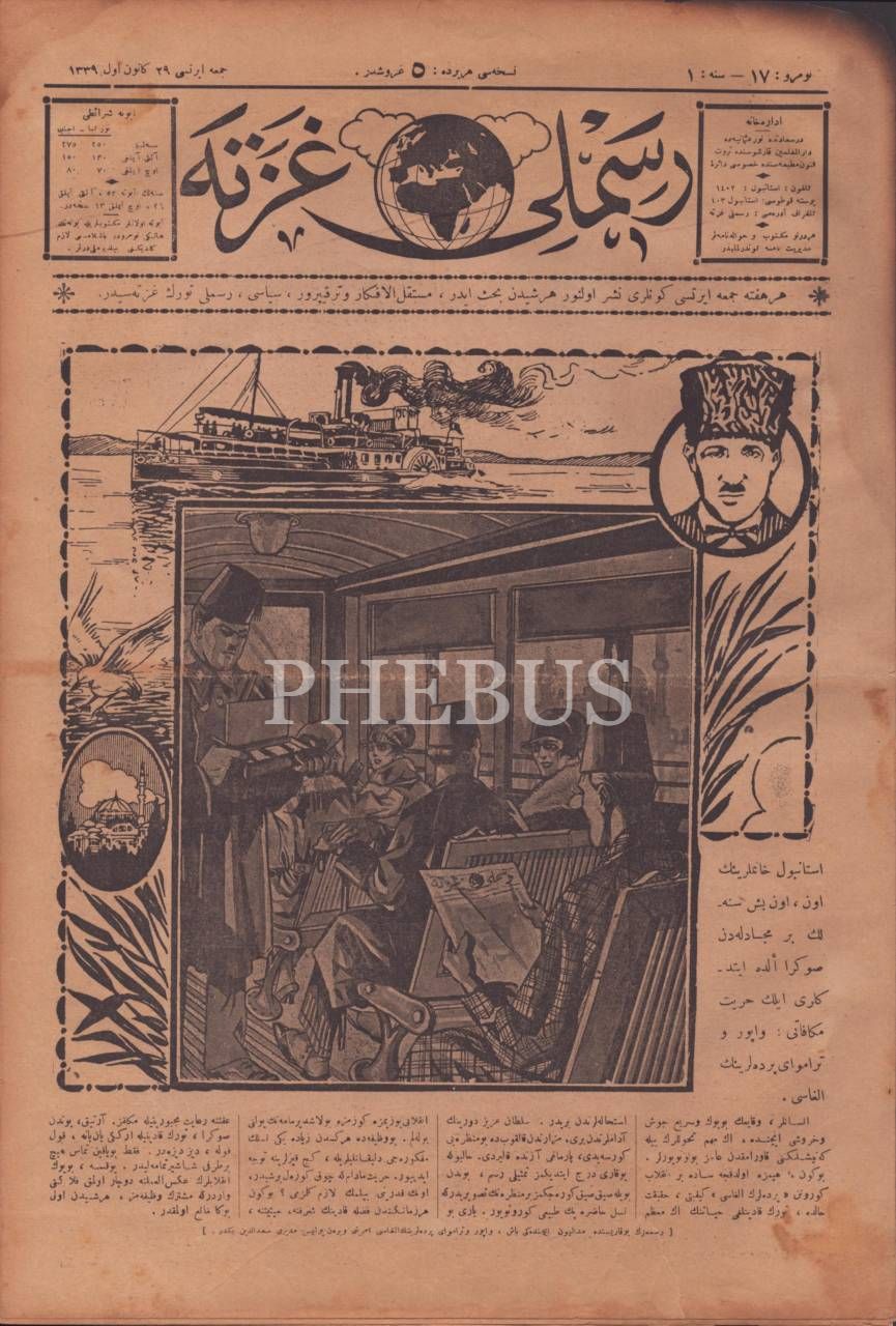 Her şeyden bahseden terakkiperver, siyasi RESİMLİ GAZETE´nin Şirket-i Hayriyye görselli 17. sayısı, 29 Kanunievvel 1339, 27x40 cm