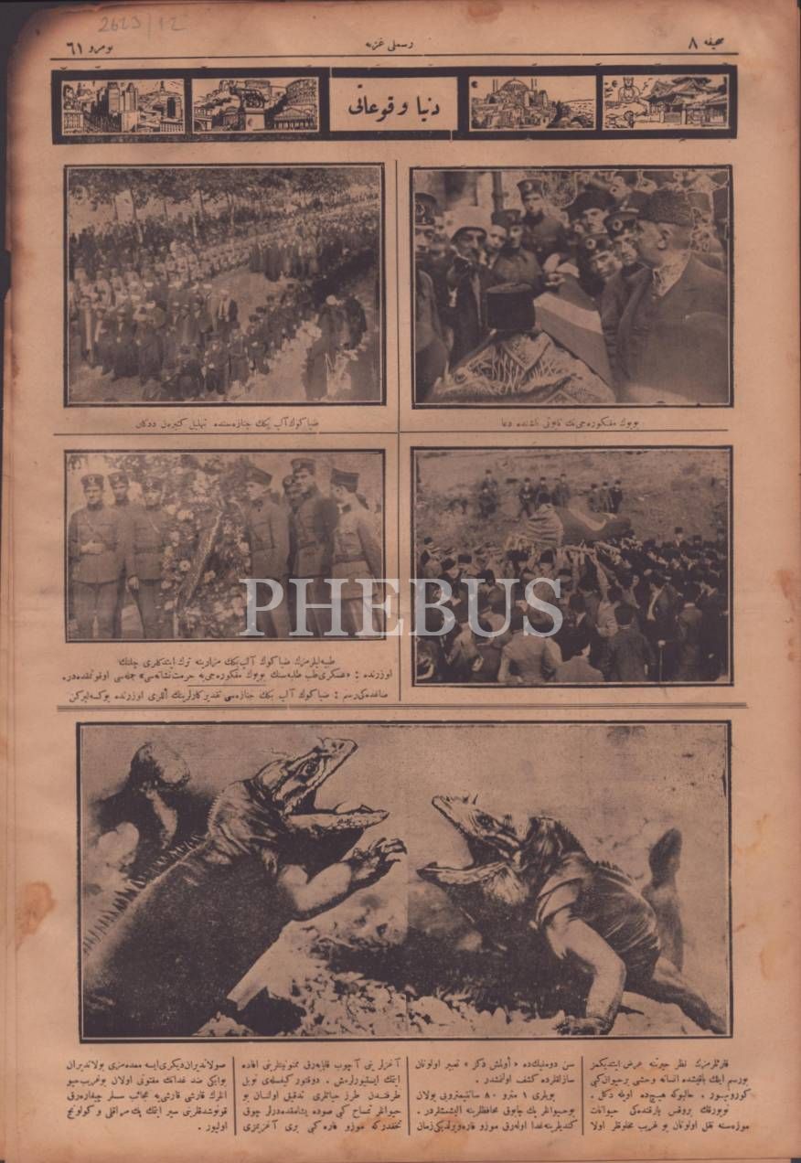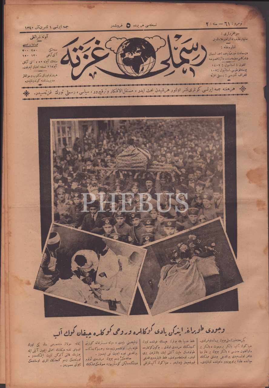 Her şeyden bahseden terakkiperver, siyasi RESİMLİ GAZETE´nin Ziya Gökalp´ın cenaze törenine dair kapak görselli 61. sayısı, 1 Teşrinisani 1340, 27x40 cm