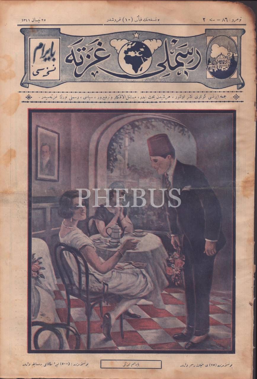 Her şeyden bahseden terakkiperver, siyasi RESİMLİ GAZETE´nin renkli kapak görseliyle 86. sayısı, 25 Nisan 1341, 27x40 cm