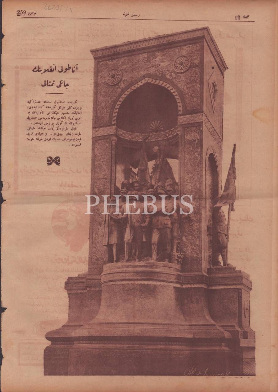 Her şeyden bahseden terakkiperver, siyasi RESİMLİ GAZETE´nin Cumhuriyet Anıtı görselli 259. sayısı, 18 Ağustos 1928, 27x40 cm