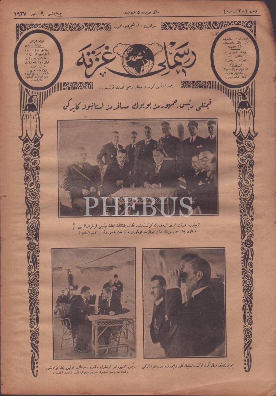 RESİMLİ GAZETE´nin "Kıymetli Reis-i Cumhurumuz [Atatürk] Büyük Misafirimiz İstanbul´a Gelirken" başlığıyla 201. sayısı, 9 Temmuz 1927, 27x40 cm
