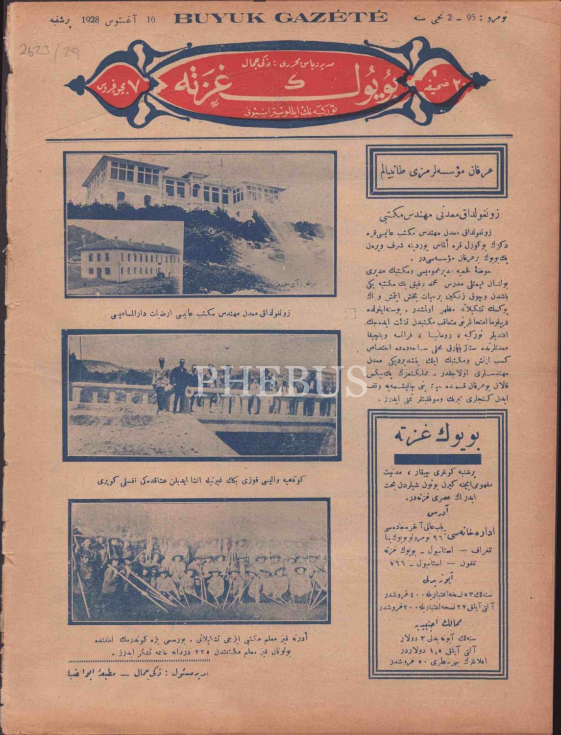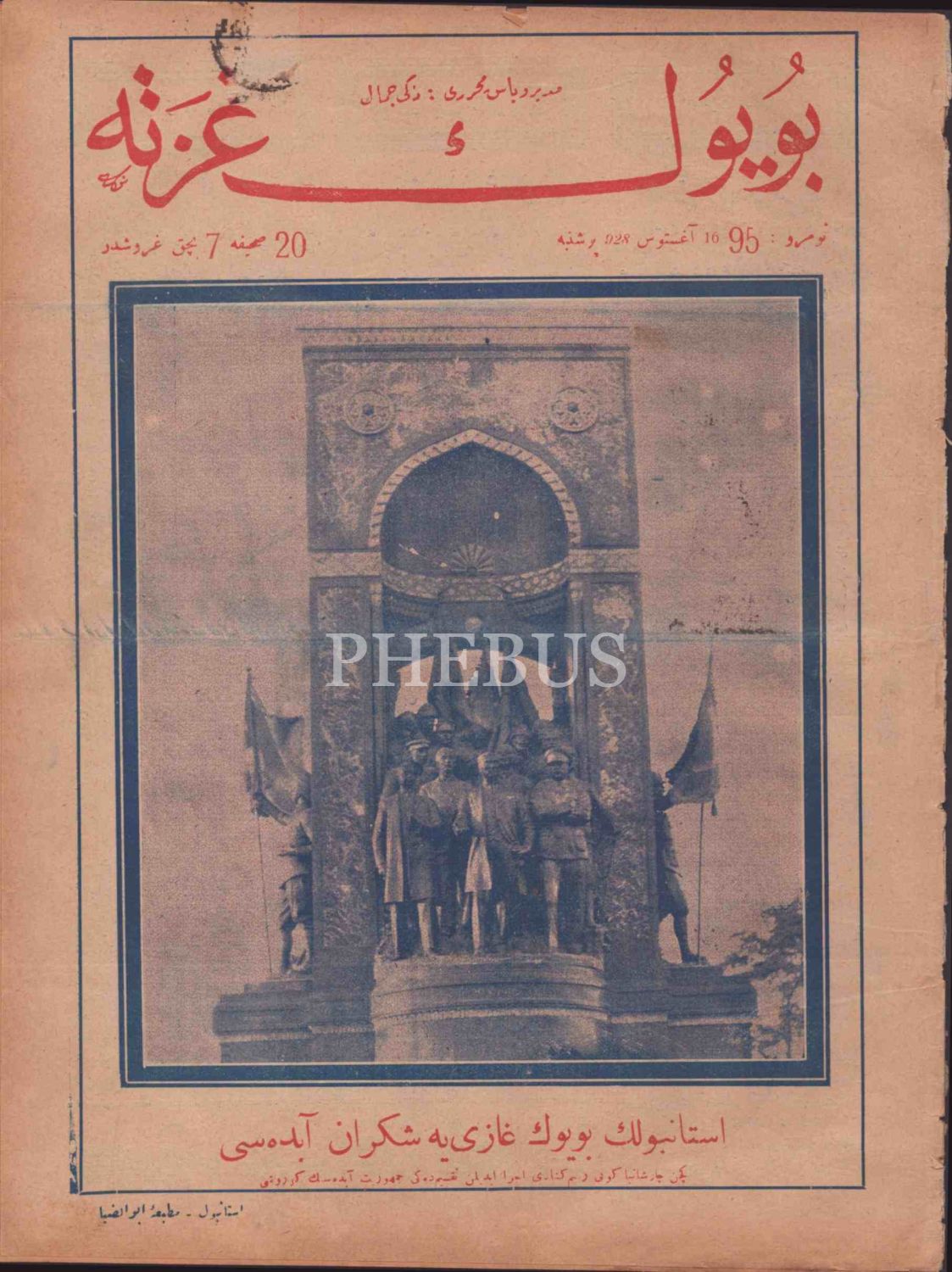 BÜYÜK GAZETE´nin "İstanbul´un Büyük Gazi´ye Şükran Abidesi" başlıklı Cumhuriyet Anıtı görseliyle 95. sayısı, 16 Ağustos 1928, 23x30 cm
