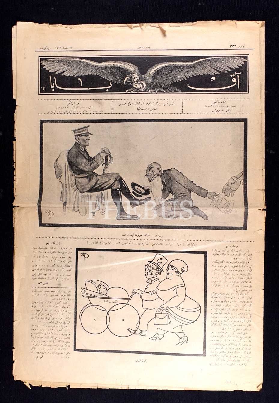 Mizah dergisi AKBABA´nın Mustafa Kemal Atatürk görselli 336. sayısı, 22 Şubat 1926, 33x50 cm