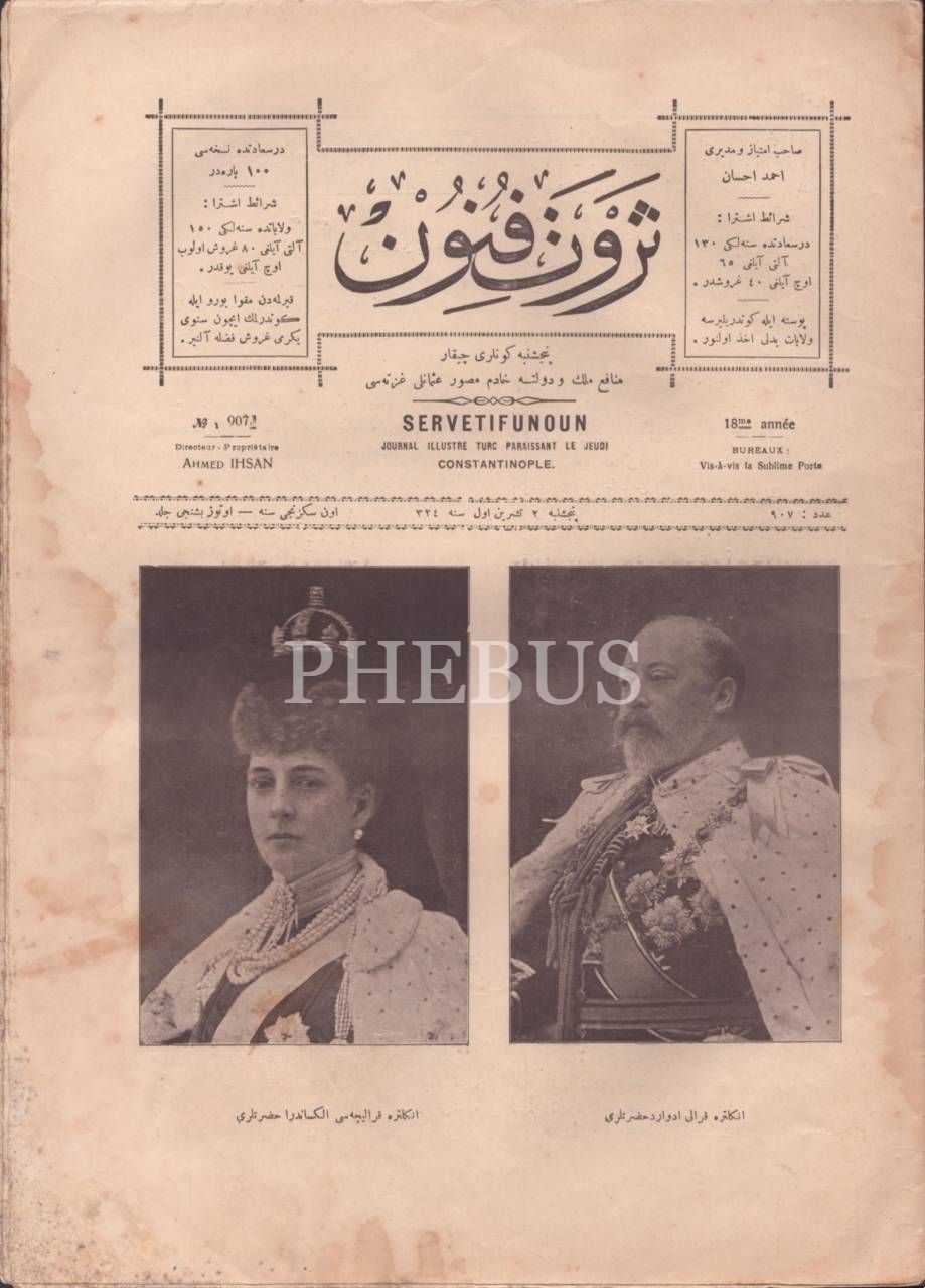 SERVET-İ FÜNUN dergisinin İngiltere Kralı ve Kraliçesi görselli 907. sayısı, 2 Teşrin-i Evvel 1324, 24x32 cm