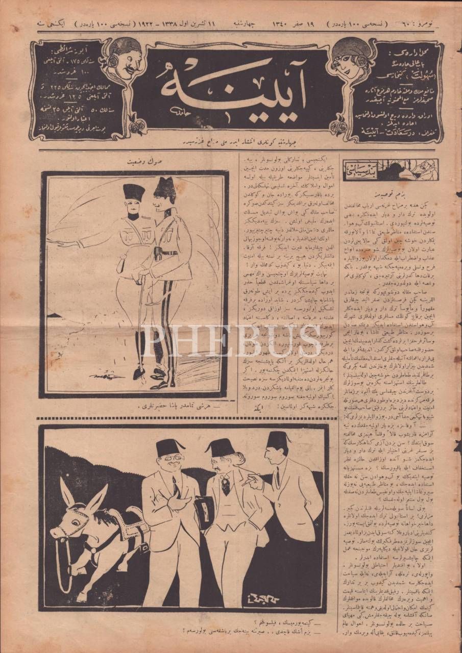 Milli mizah gazetesi AYİNE´nin Mustafa Kemal Atatürk çizimli 60. sayısı, 11 Teşrin-i Evvel 1922, 28x39 cm