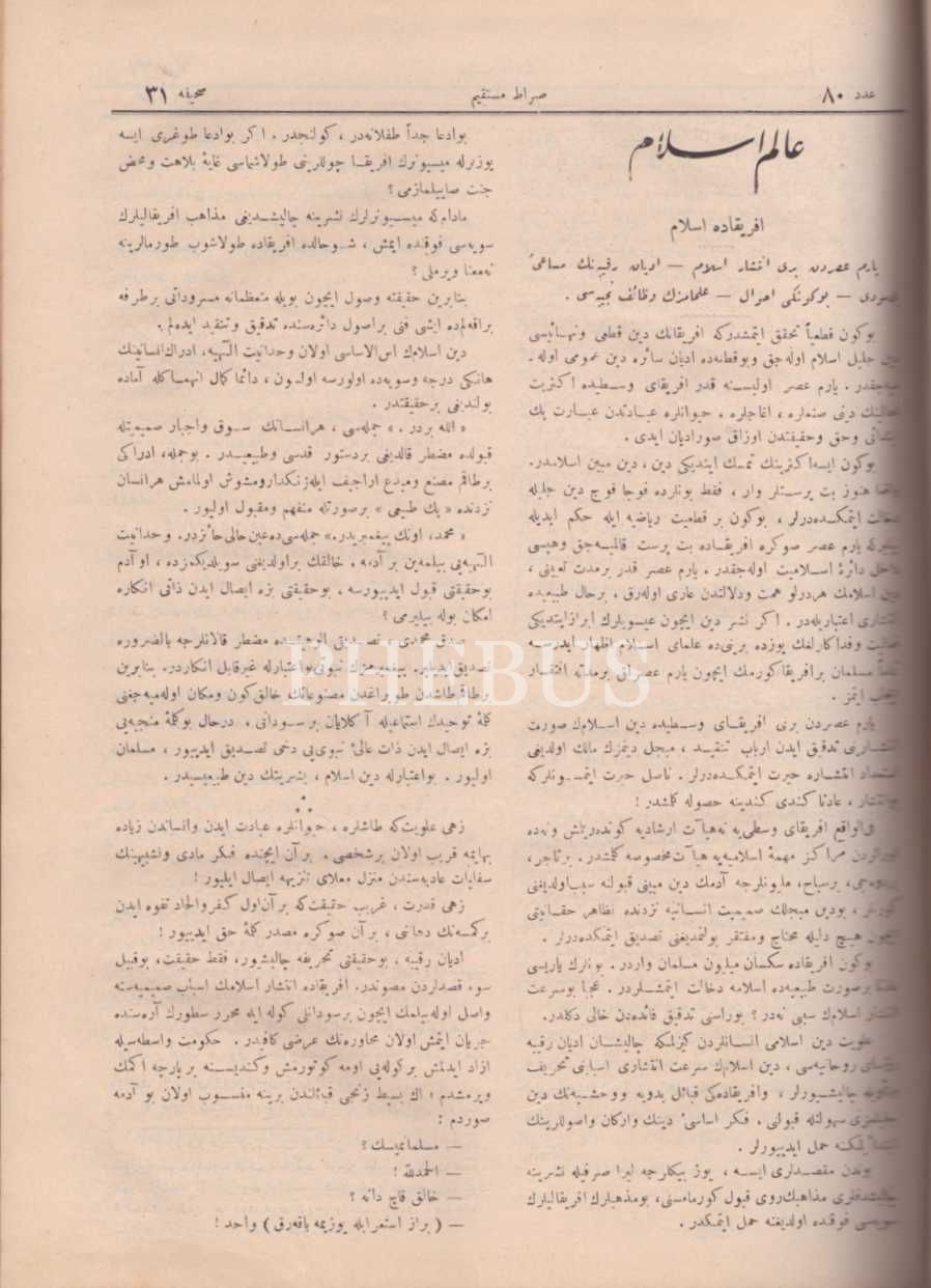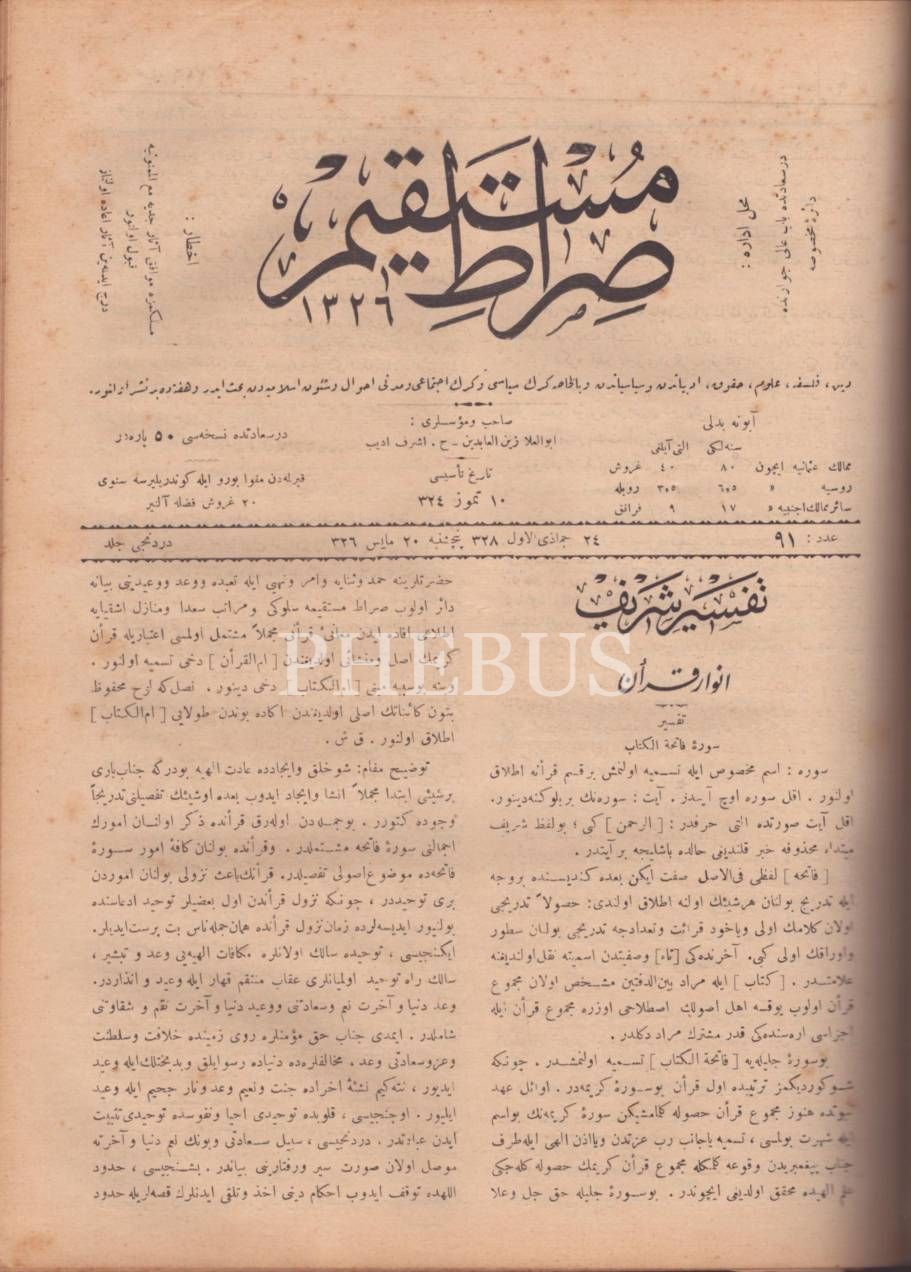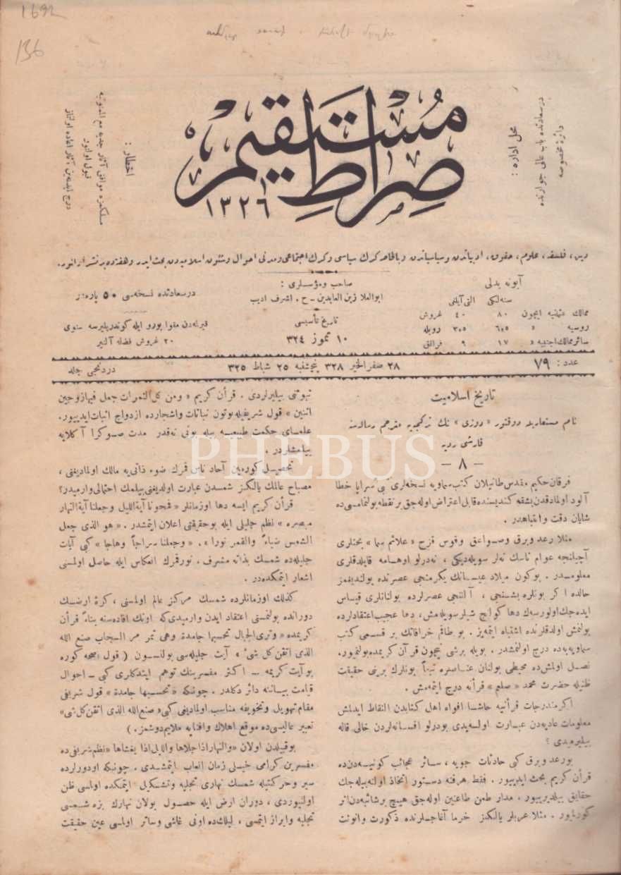 SIRAT-I MÜSTAKİM dergisinin Şubat 1325-Ağustos 1326 yıllarında yayımlanan 79 ila 104. sayıları, 25x34 cm