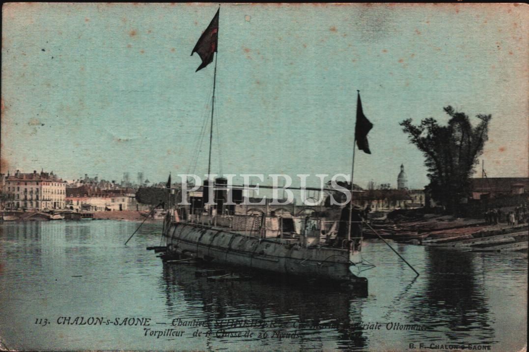 Osmanlı Donanmasına ait bir torpido botu Sultanhisar, ed. B.F. Chalon S Saone, postadan geçmiş