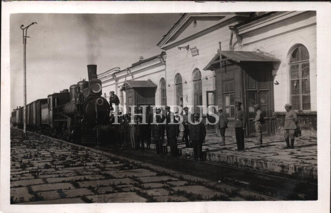 Kars tren istasyonunda buharlı kara tren ile fotoğraf çektiren makinistler, 9x14 cm