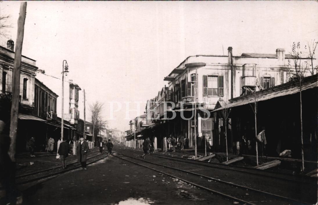 Zonguldak tren rayları üzerinde yürüyen fesli insanlar, 9x14 cm