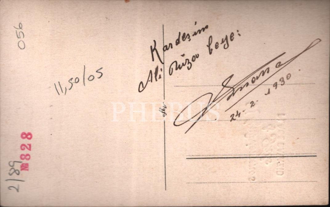 TCDD Hermes kanatlı uçan tekerlek rozetli makinist, Andriomenos & Fils- Beyazıt, ithaflı ve 1930 tarihli, 9x14 cm