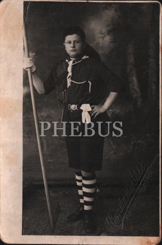 Elinde sopasıyla poz veren genç izci, Foto Constantinides-Pera, 1929, 9x14 cm