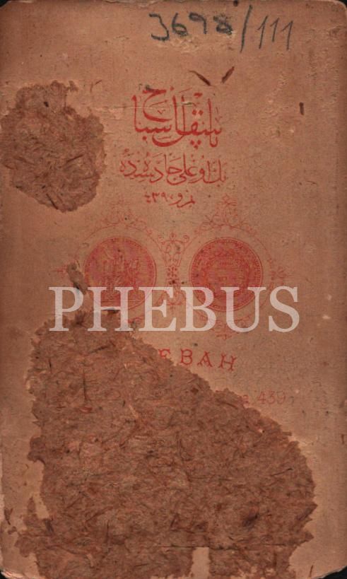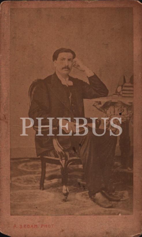 Masa başında elinde kitabıyla poz veren düşünceli beyefendi, Foto P. Sebah, 6x10 cm