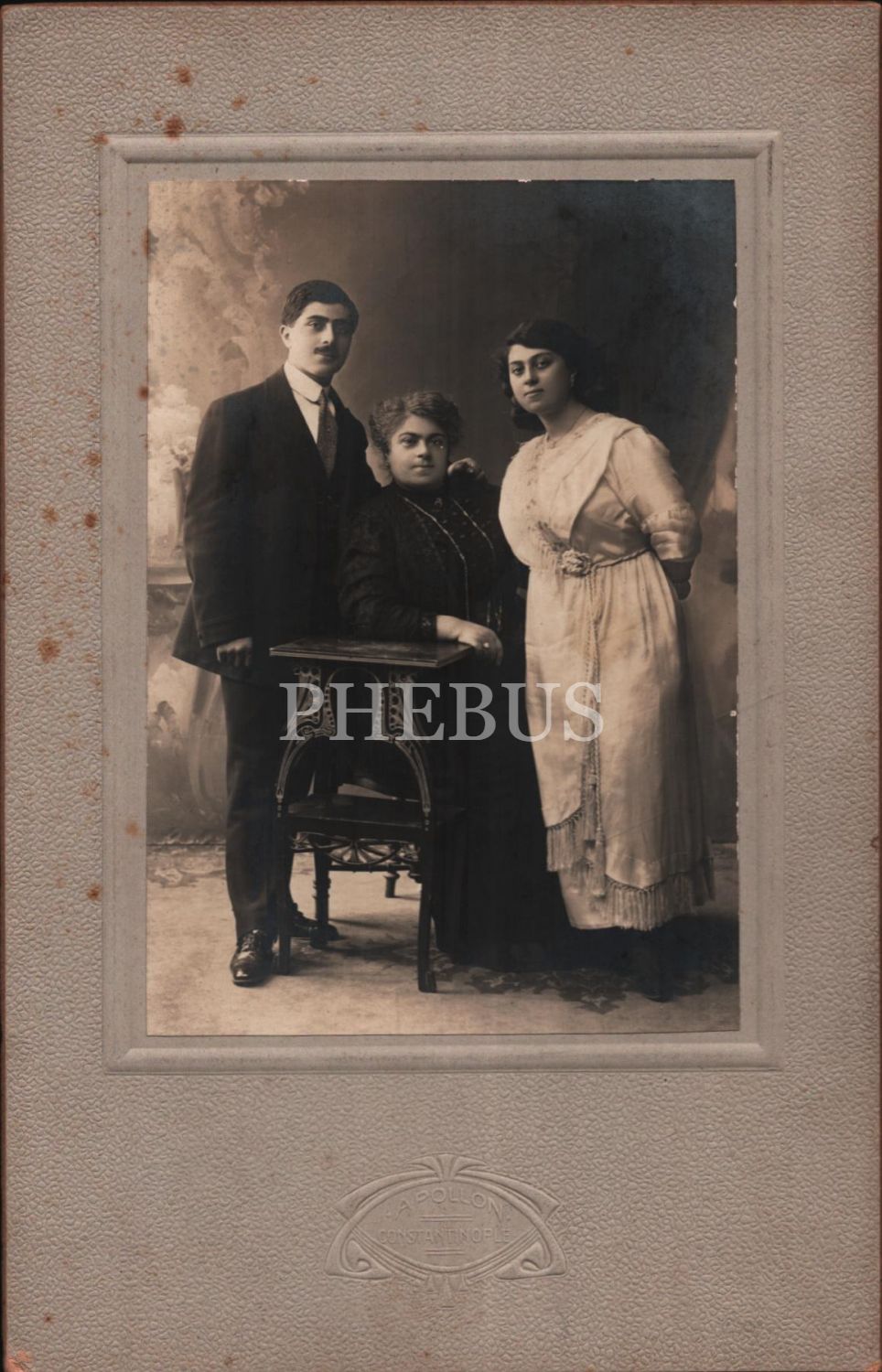 Anne ile çocuklarının kabin fotoğrafı, Foto Apollon- Constantinople, 15x23 cm