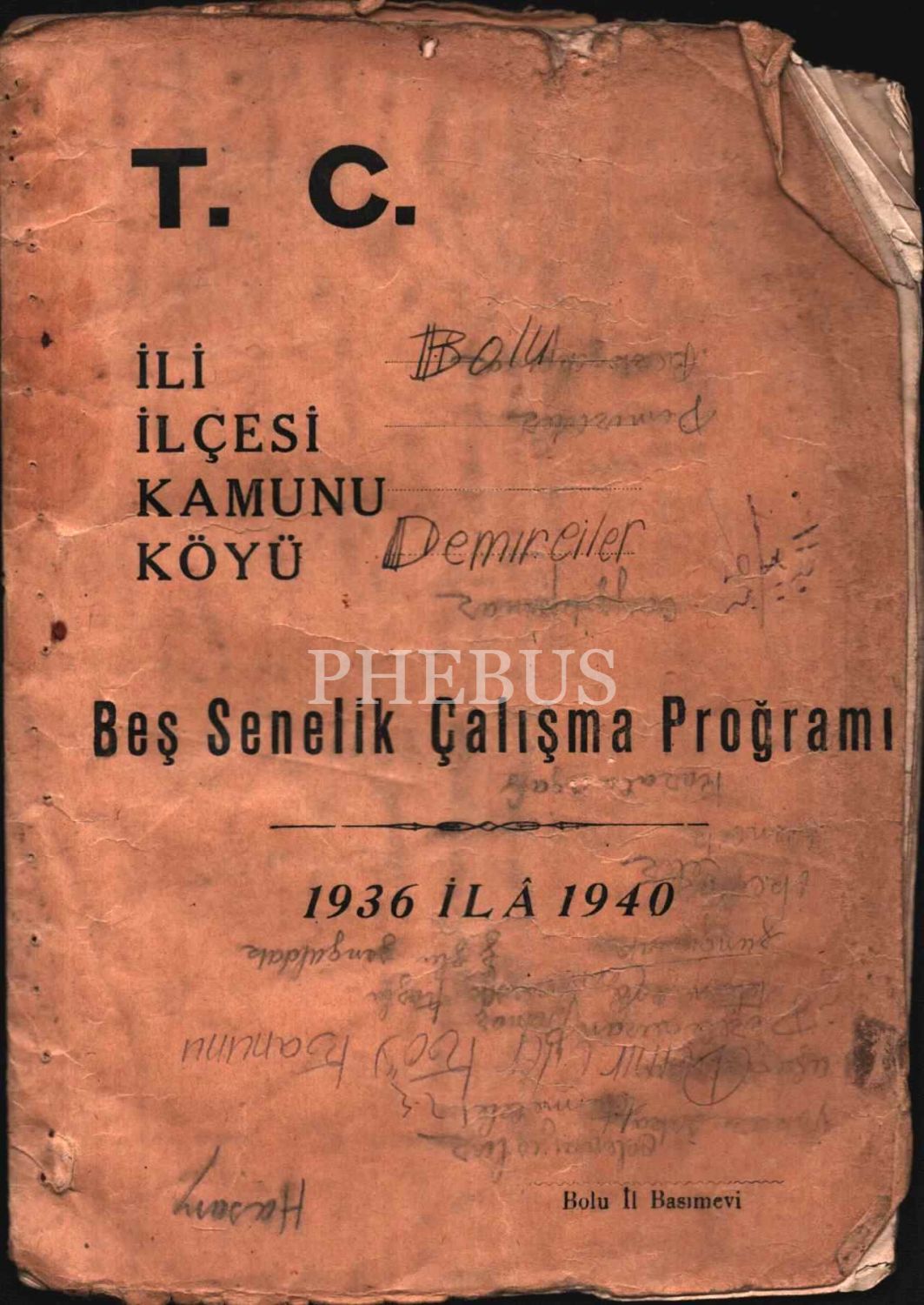 KÖY KANUNU, T.C. Beş Senelik Çalışma Proğramı (1936 ilâ 1940), Bolu İl Basımevi, 24 sayfa, 16x23 cm