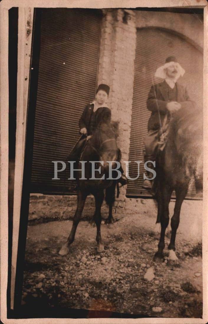At üstünde gezintiye çıkan fesli beyefendiler, Georges Sargologo, Constantinople, 9x14 cm