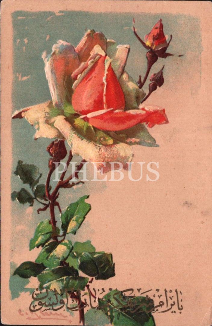 "Bayram-ı şerifiniz mübarek olsun" yazılı, çiçek desenli gofre kartpostal, ed. F. Leffler, Almanya