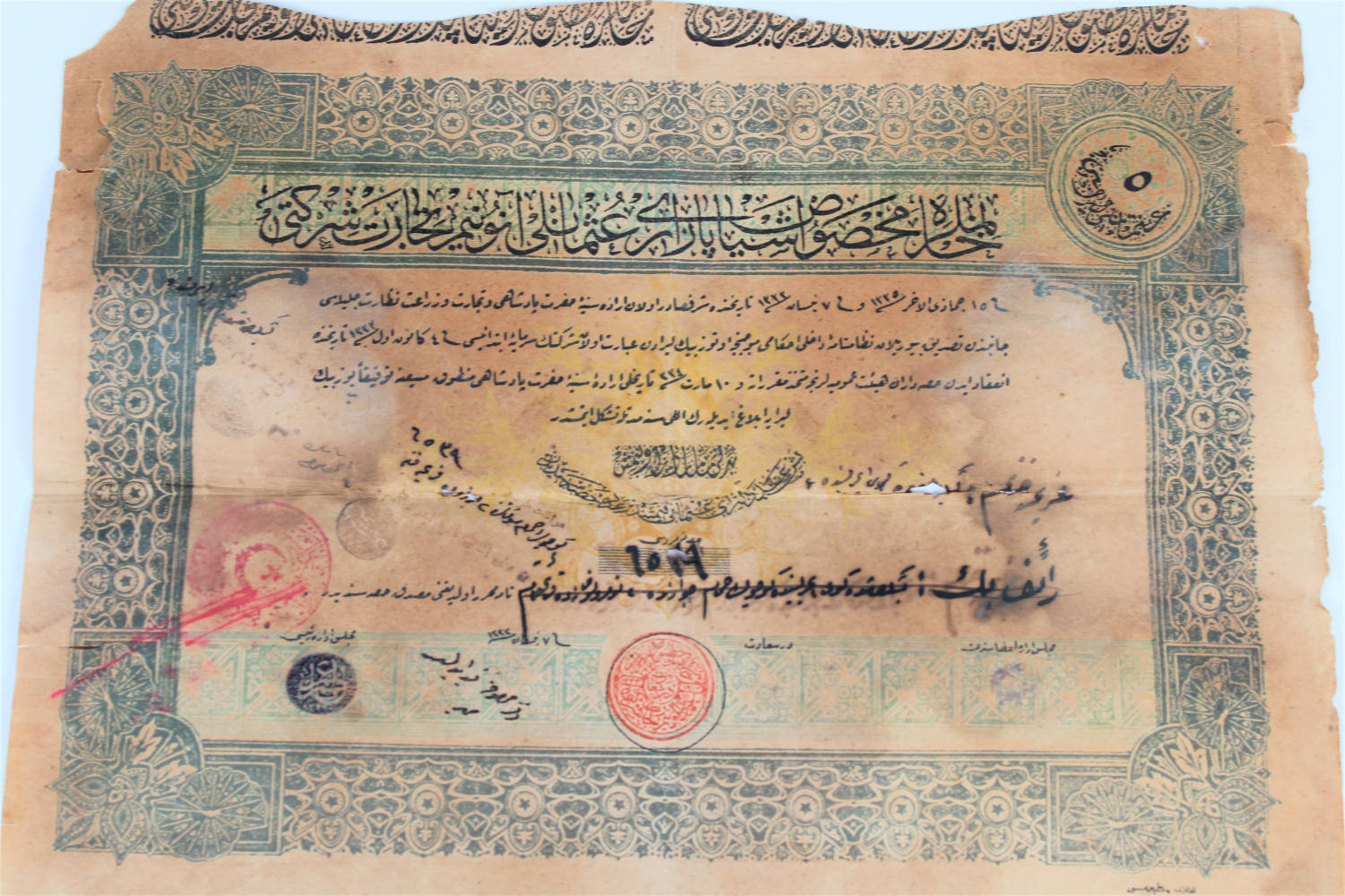 Hanımlara Mahsus Eşya Pazarı Osmanlı Anonim Ticaret Şirketi 5 hisse, Hisse Senedi