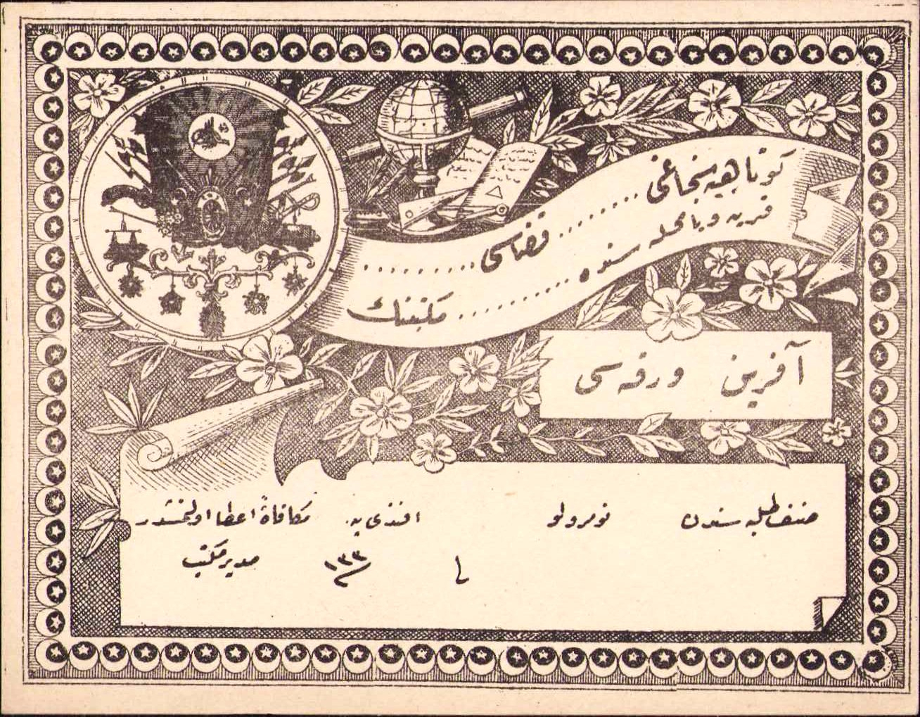 Osmanlıca aferin varakası, matbu, 11x9 cm
