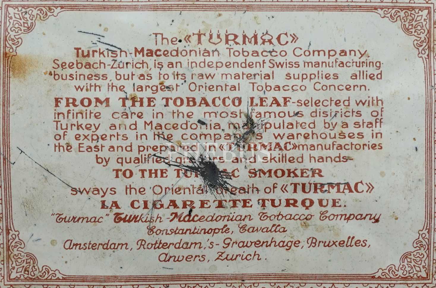 TURMAC BRUN marka, içi boş teneke sigara kutusu, 15x12x4 cm