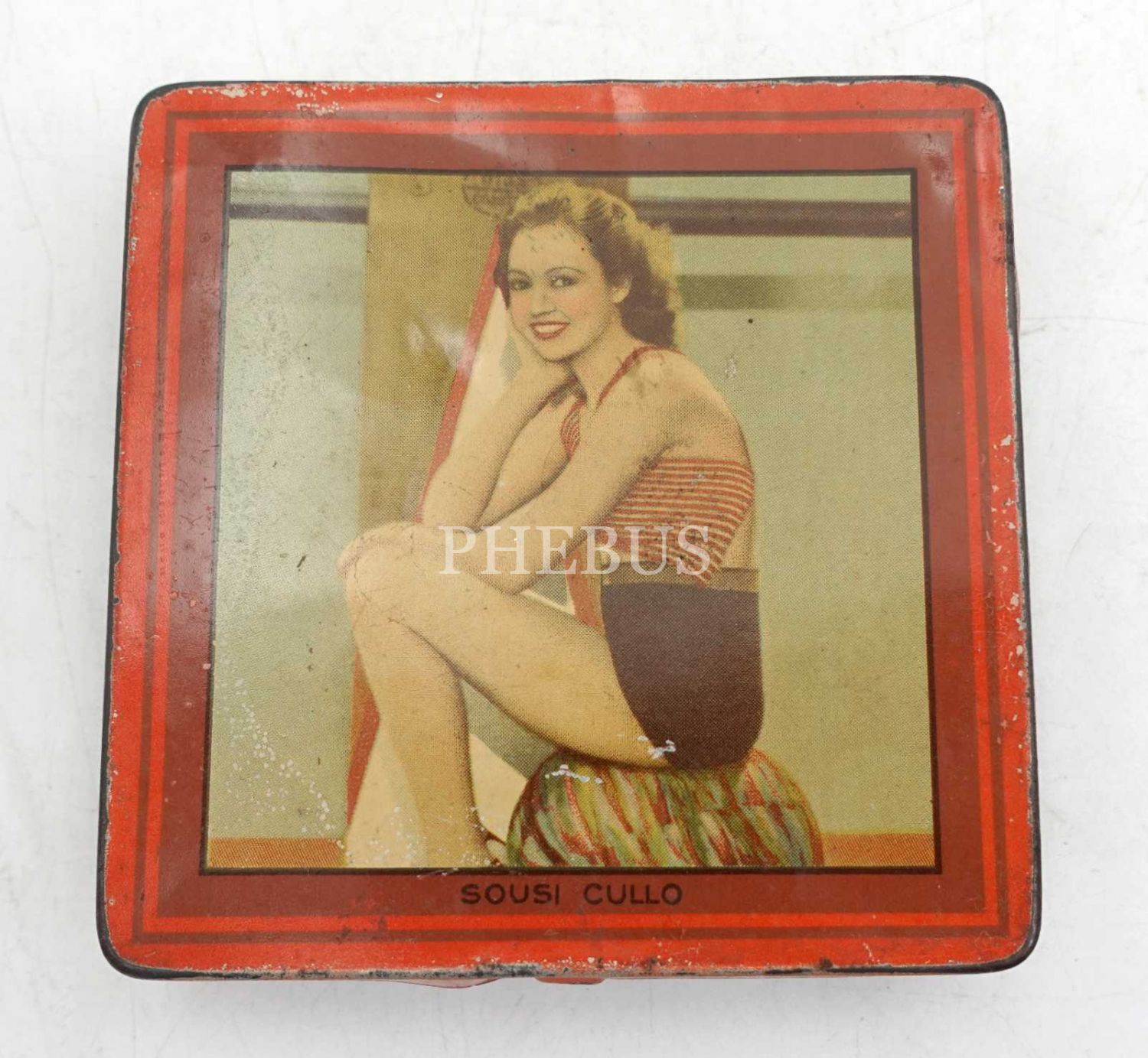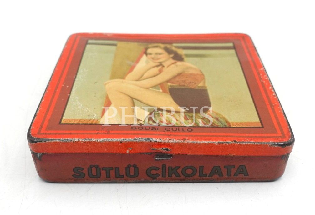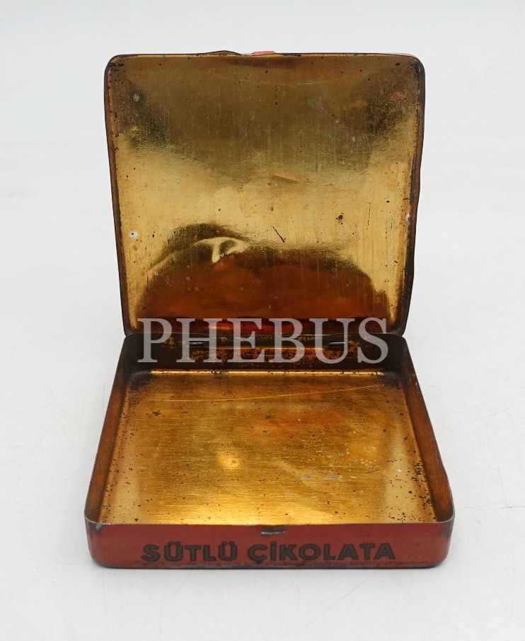MELBA marka teneke çikolata kutusu, üzeri Sousi Cullo görselli, 9x9x2 cm