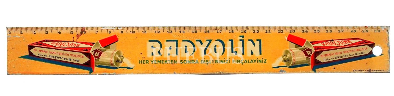 RADYOLİN diş macunu reklamlı teneke cetvel, 31x4 cm