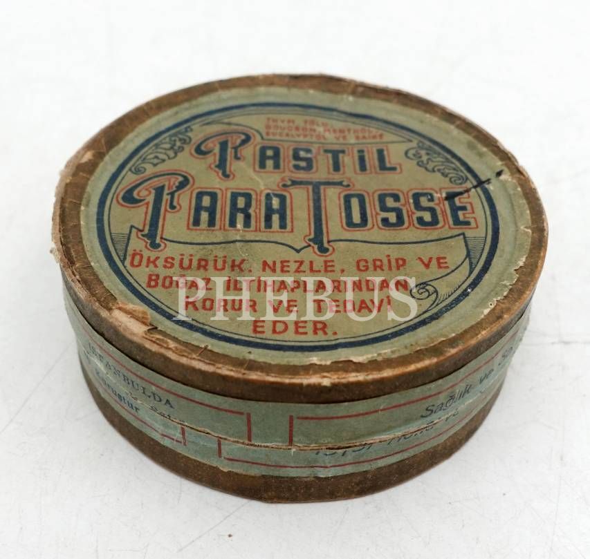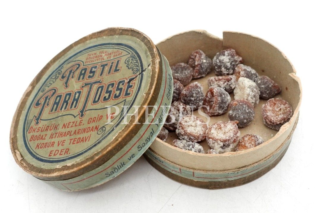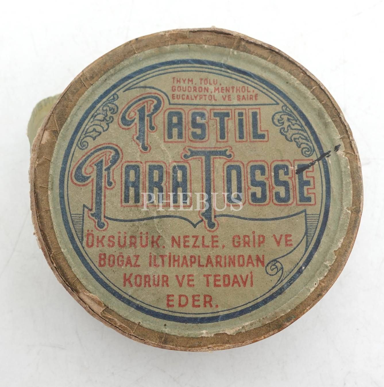 "Pastil Para Tosse" yazılı karton kutusunda, içi dolu boğaz pastili, 7x3 cm