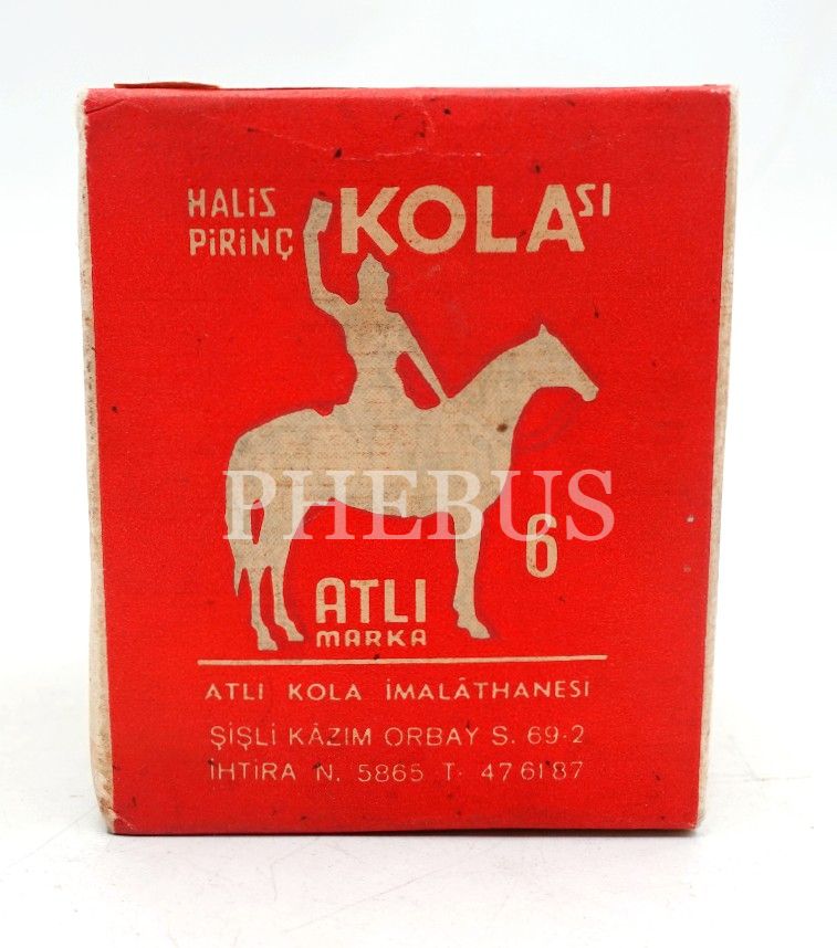 Açılmamış kutusunda, Atlı Kola İmalathanesi üretimi halis pirinç kolası, 9x8x7 cm