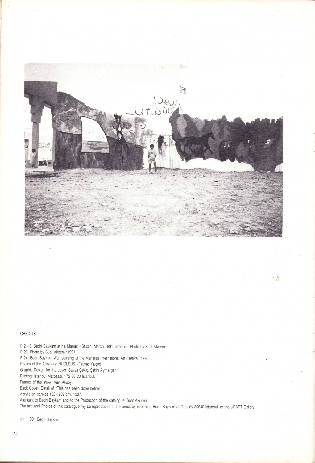 Bedri Baykam'ın 'Gerçeksahteler' sergisinin kataloğu, Bedri Baykam'dan imzalı ithaflı, 28 Mart-16 Nisan 1991, Urart Sanat Galerileri, 24 sayfa, 22x32cm.