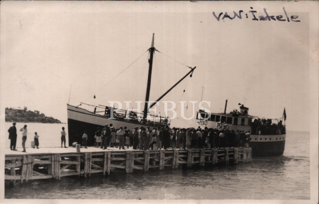 Van iskelesinde vapur bekleyen yolcular, 10 Mayıs 1957, 9x14 cm
