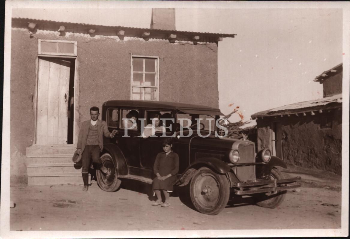 Evden çıkan bir ailenin arabaya binerken çekilmiş hatıra fotoğrafı, 9x14 cm