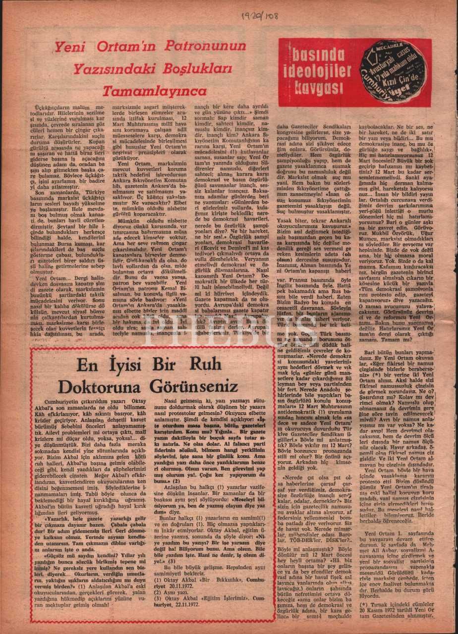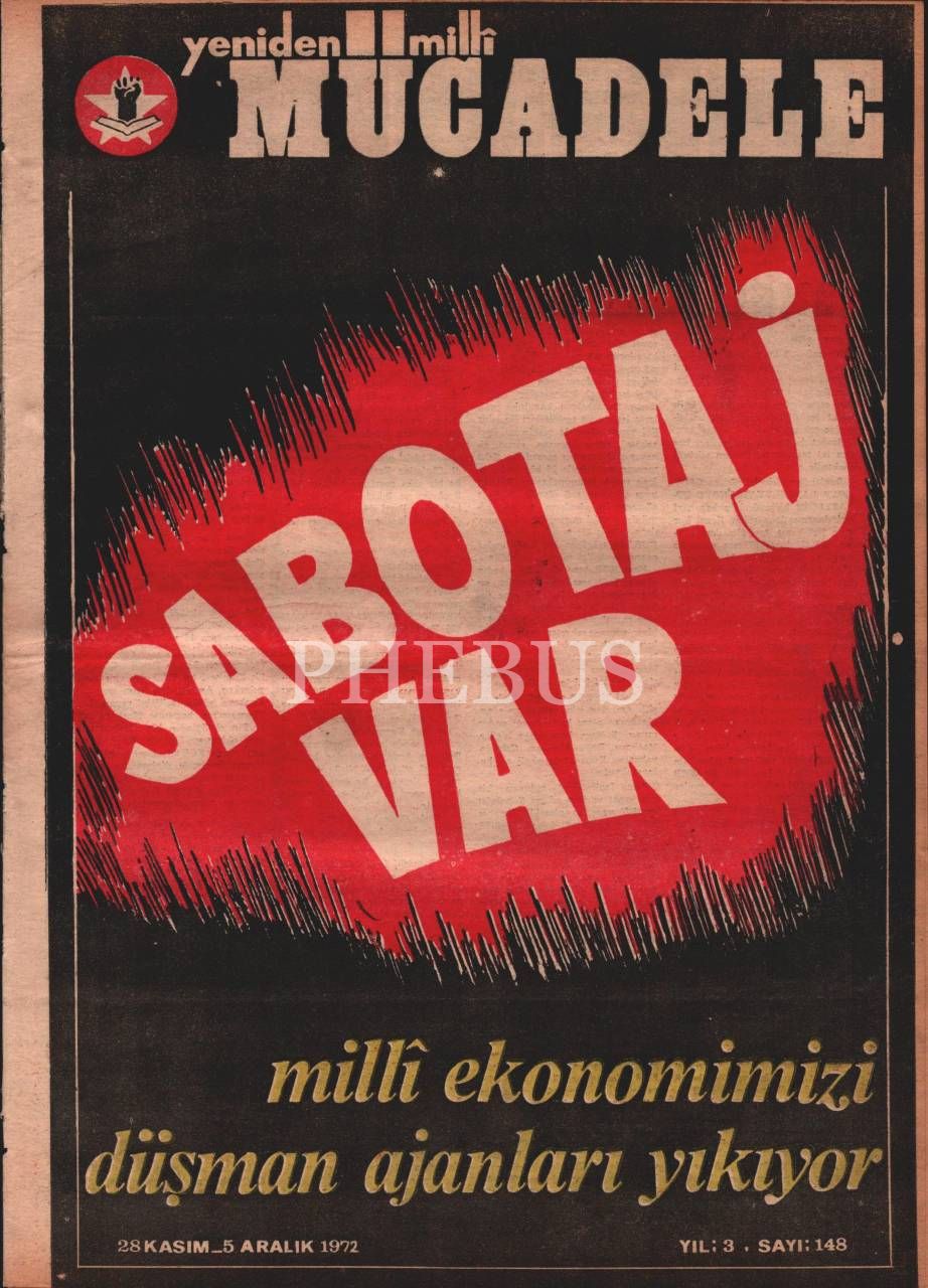 “Milletin iman, ahlak, kültür, tarih ve maddi çıkarlarına bağlı bir siyasi millî dava dergisi” YENİDEN MİLLİ MÜCADELE´nin 148. sayısı, Aralık 1972, 27x37 cm