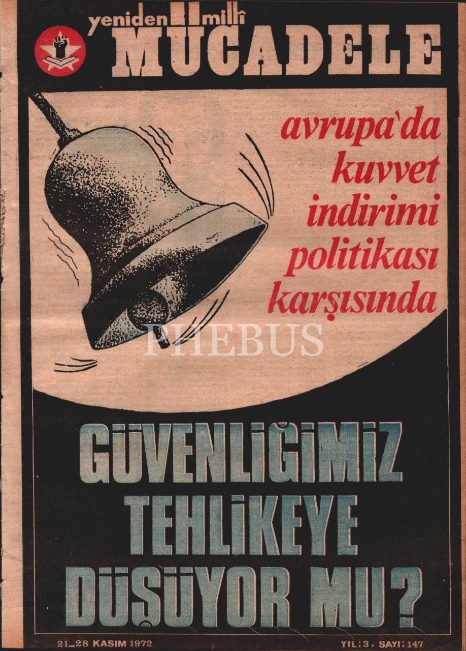 “Milletin iman, ahlak, kültür, tarih ve maddi çıkarlarına bağlı bir siyasi millî dava dergisi” YENİDEN MİLLİ MÜCADELE´nin 147. sayısı, Kasım 1972, 27x37 cm