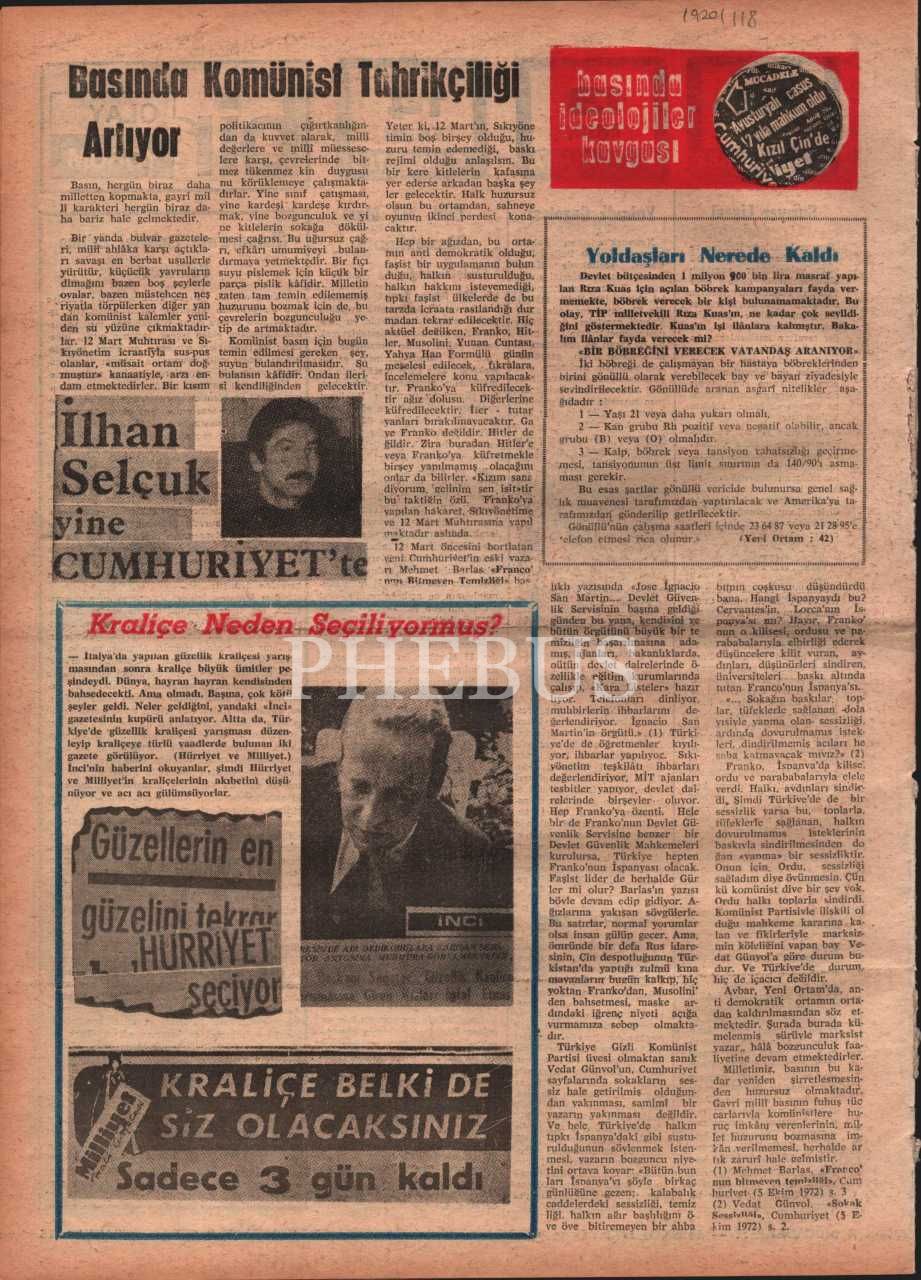 “Milletin iman, ahlak, kültür, tarih ve maddi çıkarlarına bağlı bir siyasi millî dava dergisi” YENİDEN MİLLİ MÜCADELE´nin 142. sayısı, Ekim 1972, 27x37 cm