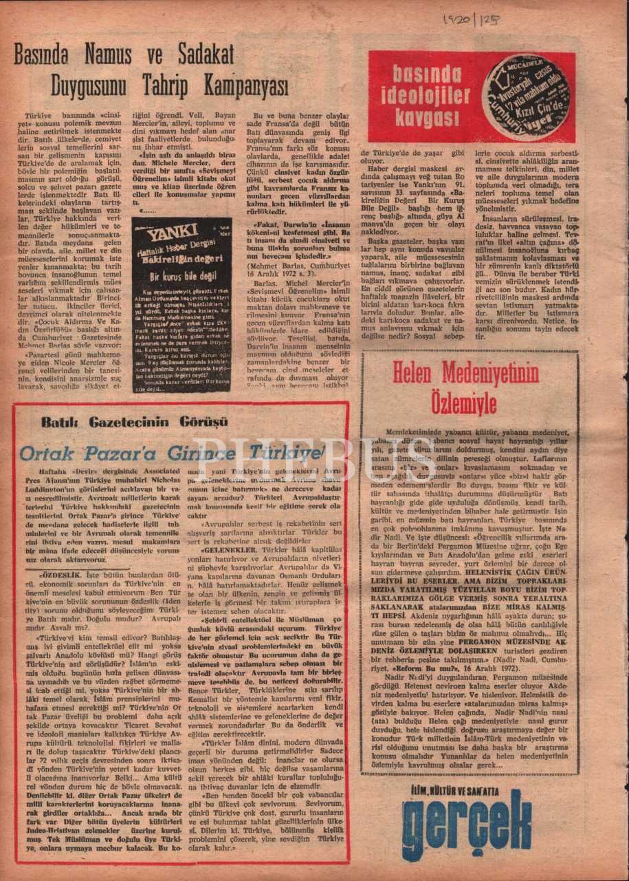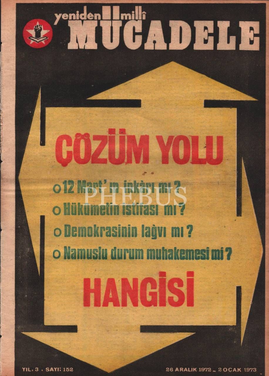 “Milletin iman, ahlak, kültür, tarih ve maddi çıkarlarına bağlı bir siyasi millî dava dergisi” YENİDEN MİLLİ MÜCADELE´nin 152. sayısı, Aralık 1972, 27x37 cm