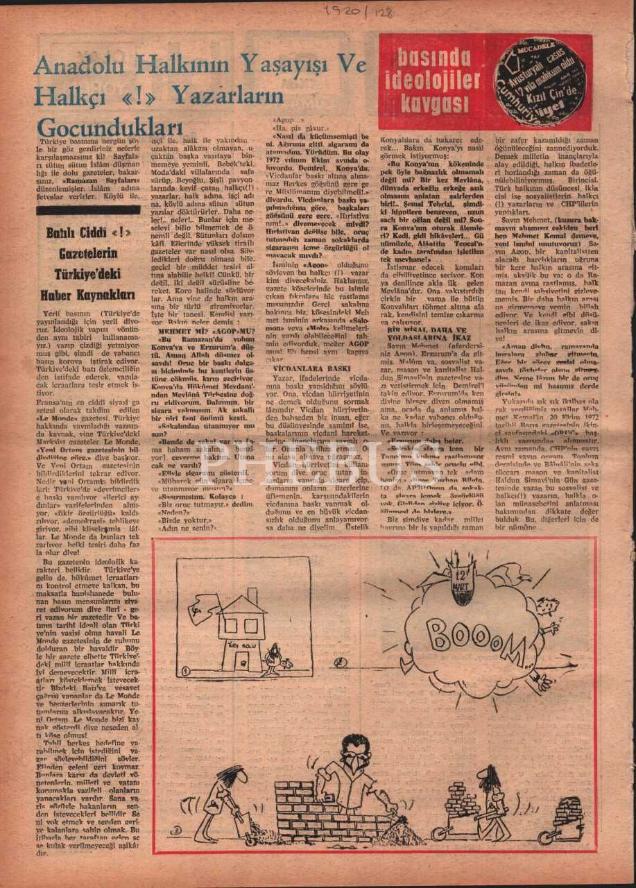 “Milletin iman, ahlak, kültür, tarih ve maddi çıkarlarına bağlı bir siyasi millî dava dergisi” YENİDEN MİLLİ MÜCADELE´nin 143. sayısı, Ekim 1972, 27x37 cm