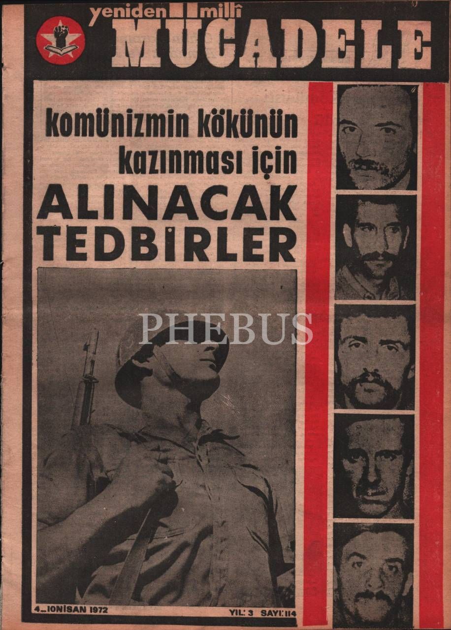 “Milletin iman, ahlak, kültür, tarih ve maddi çıkarlarına bağlı bir siyasi millî dava dergisi” YENİDEN MİLLİ MÜCADELE´nin 114. sayısı, Nisan 1972, 27x37 cm