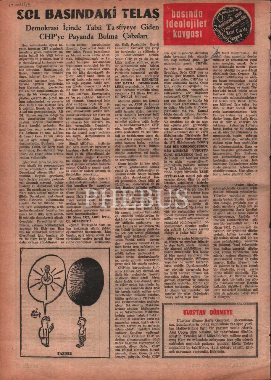 “Milletin iman, ahlak, kültür, tarih ve maddi çıkarlarına bağlı bir siyasi millî dava dergisi” YENİDEN MİLLİ MÜCADELE´nin 116. sayısı, Nisan 1972, 27x37 cm