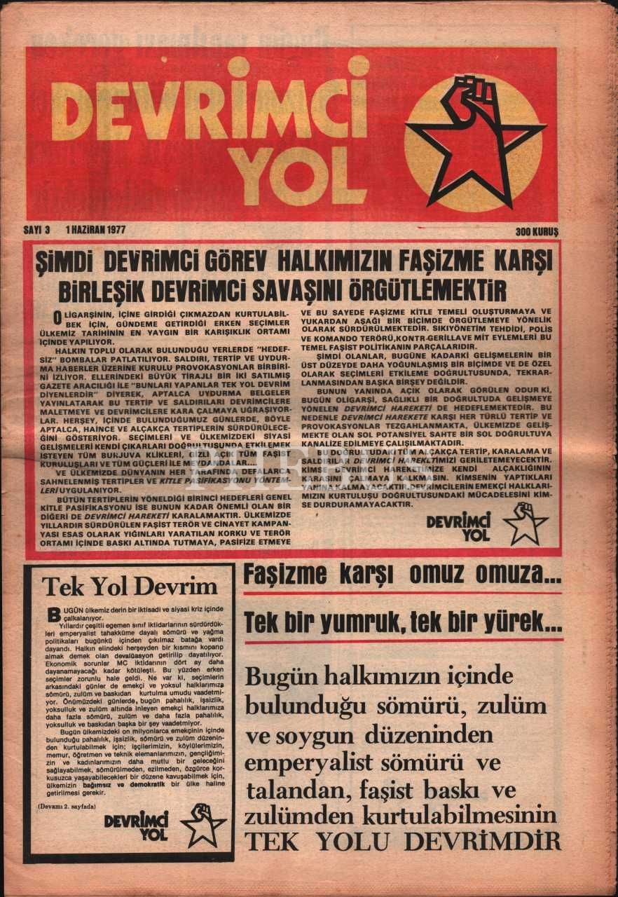 Siyasi DEVRİMCİ YOL dergisinin 3. sayısı, 1 Haziran 1977, 29x43 cm